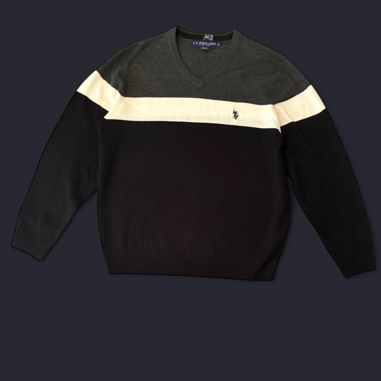 как выглядит U.S. Polo Assn. Mens V-Neck Colorblock Pullover Sweater Gray Black White M фото