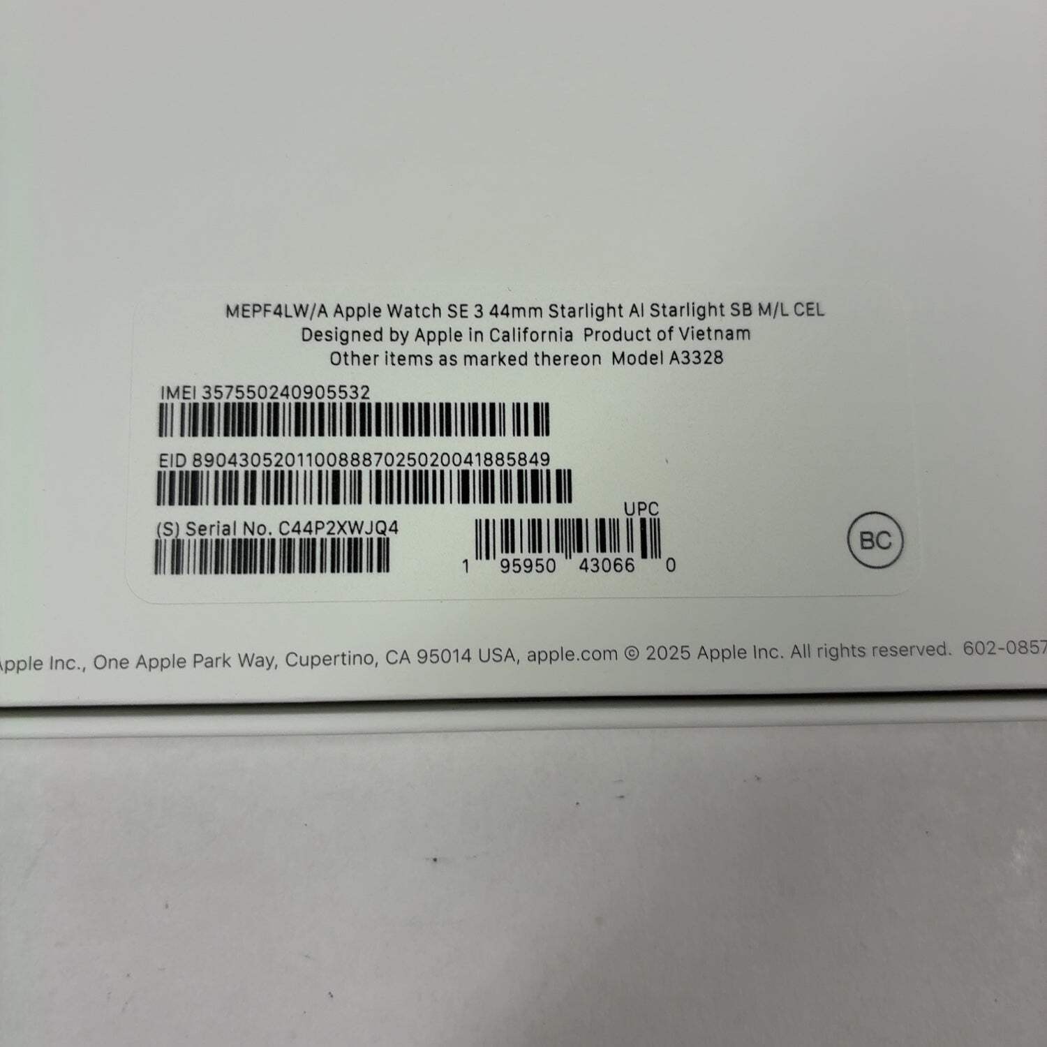 Serial Number: C44P2XWJQ4