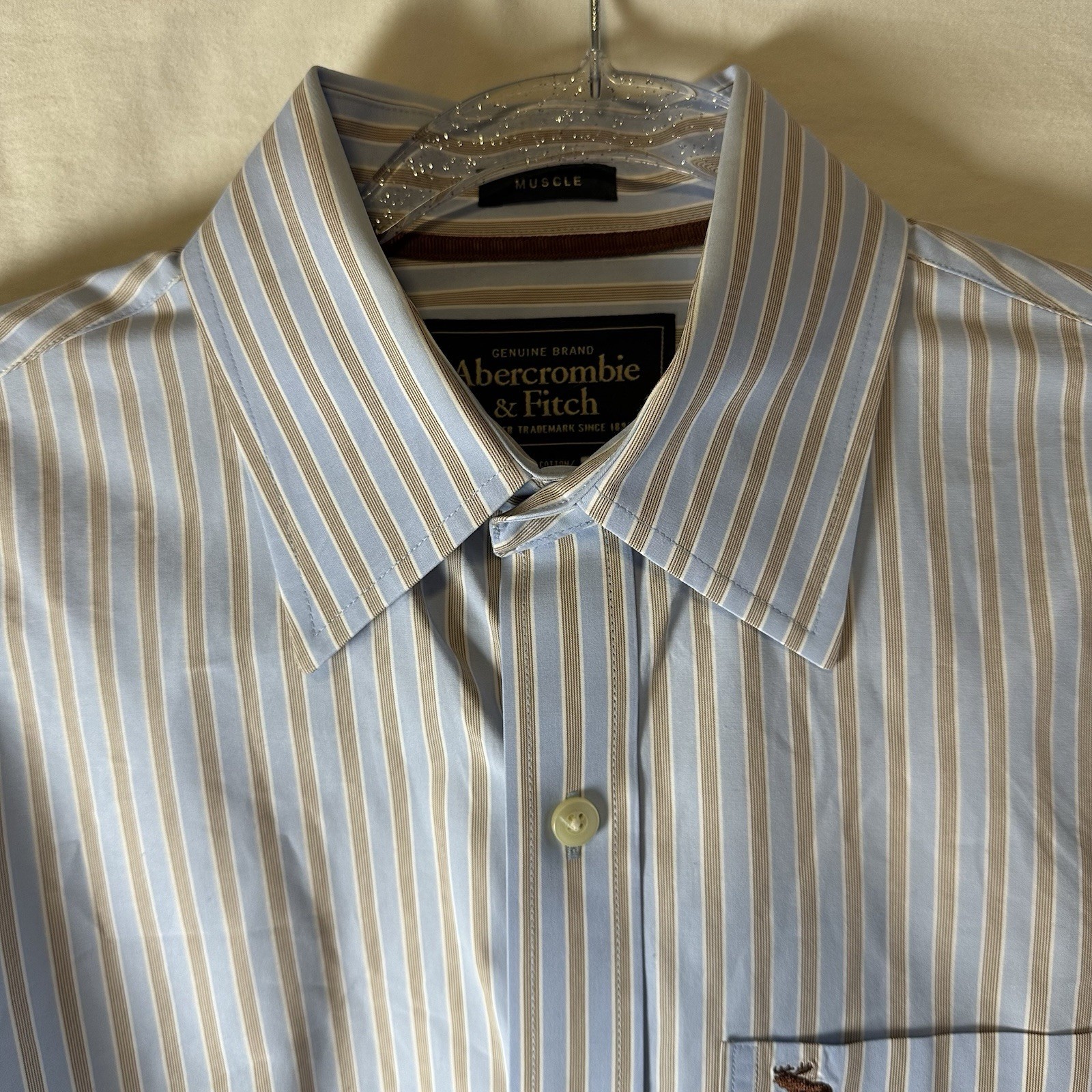 как выглядит Abercrombie Fitch Men Lt Blue Striped Long Sleeve Button Down Muscle Fit Shirt фото