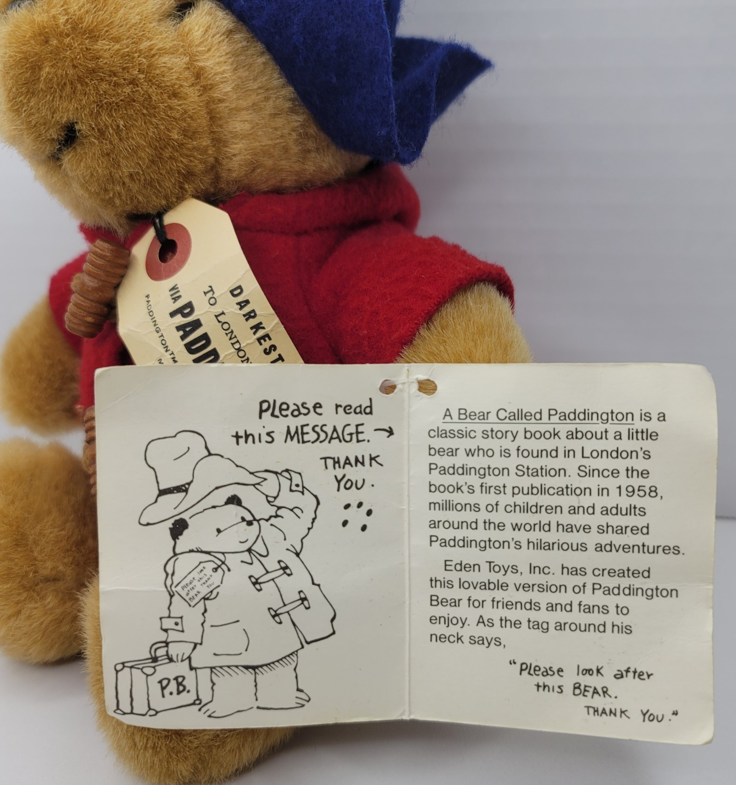 Vintage Eden Paddington Bear in Red Coat Blue Hat Plush Toy NEW NWT 1988