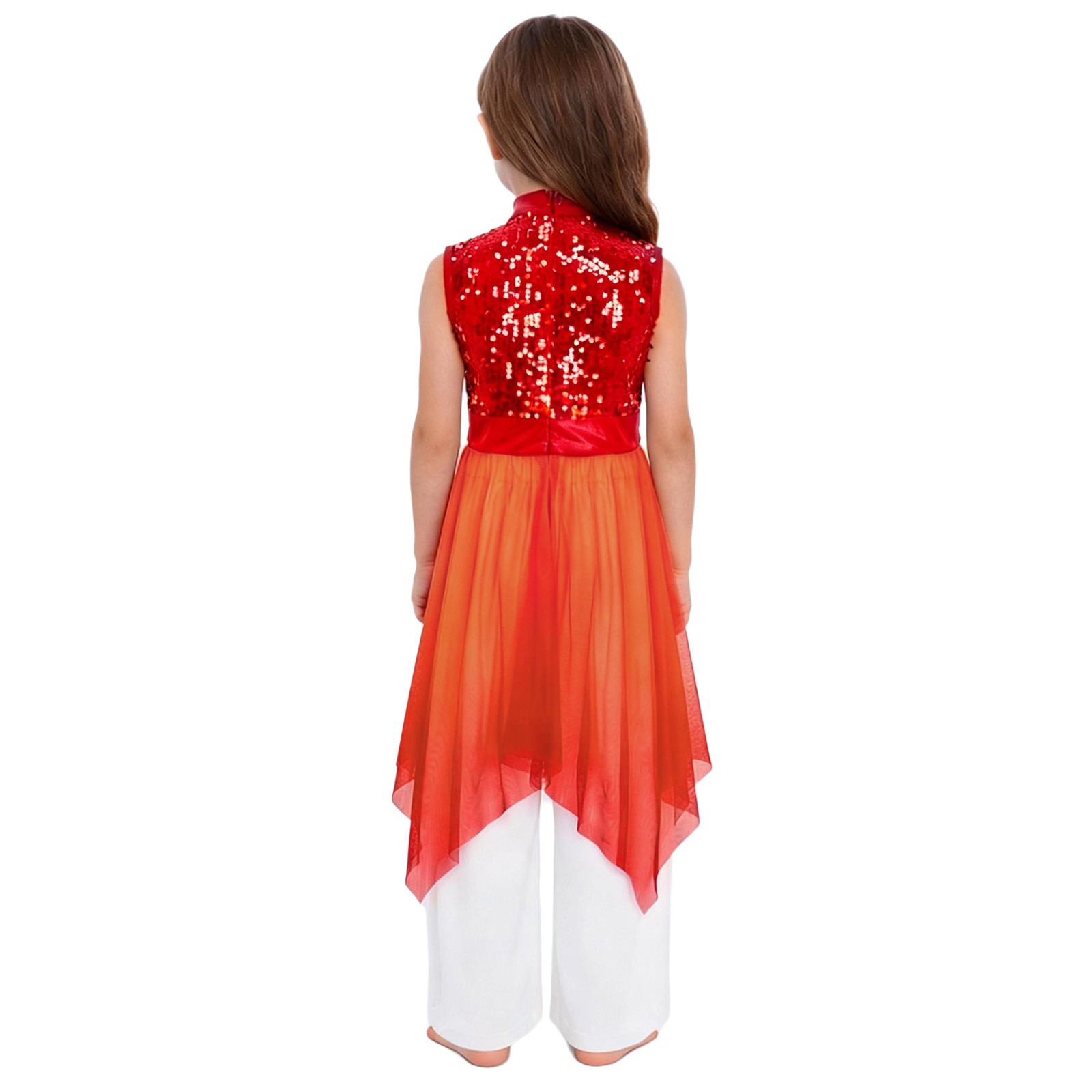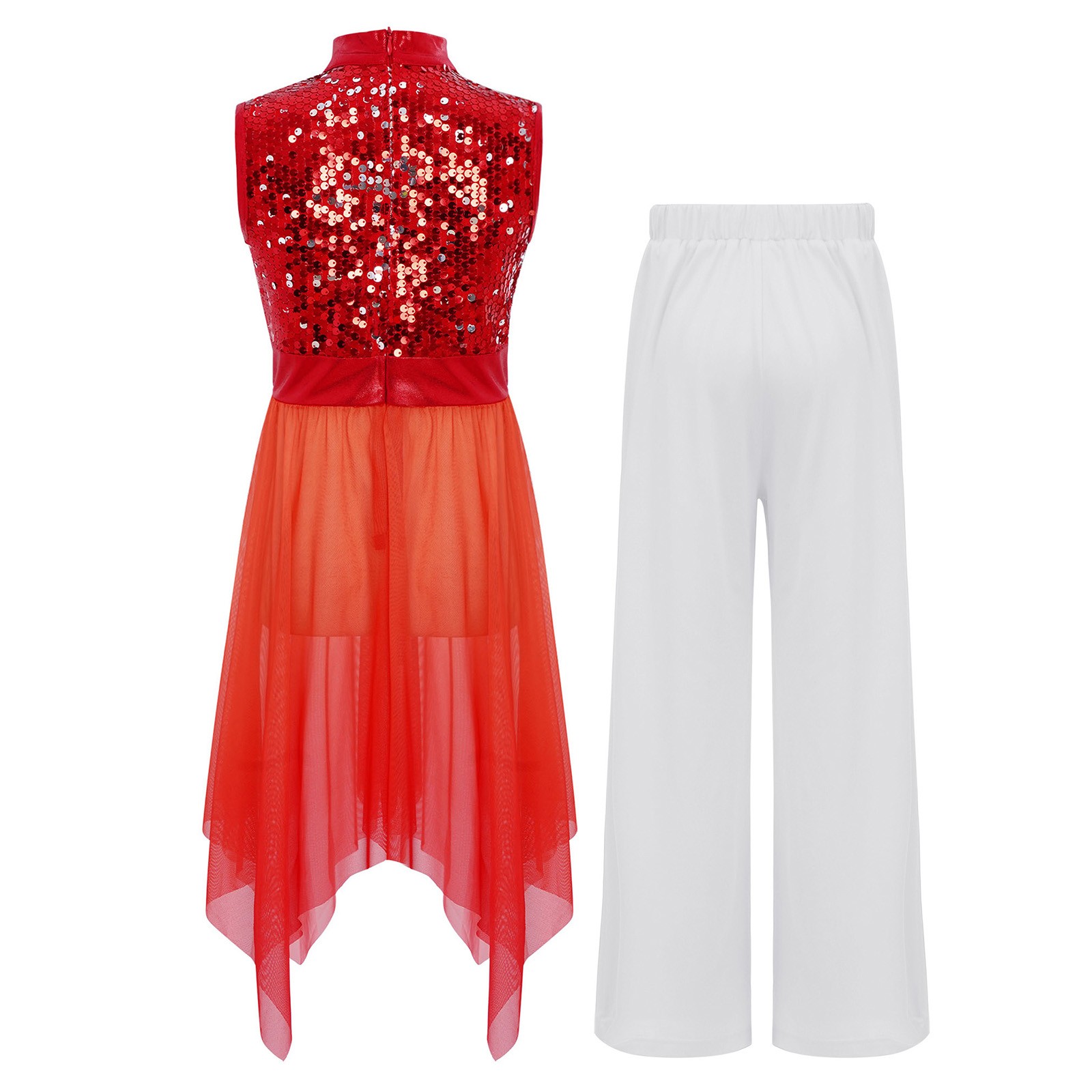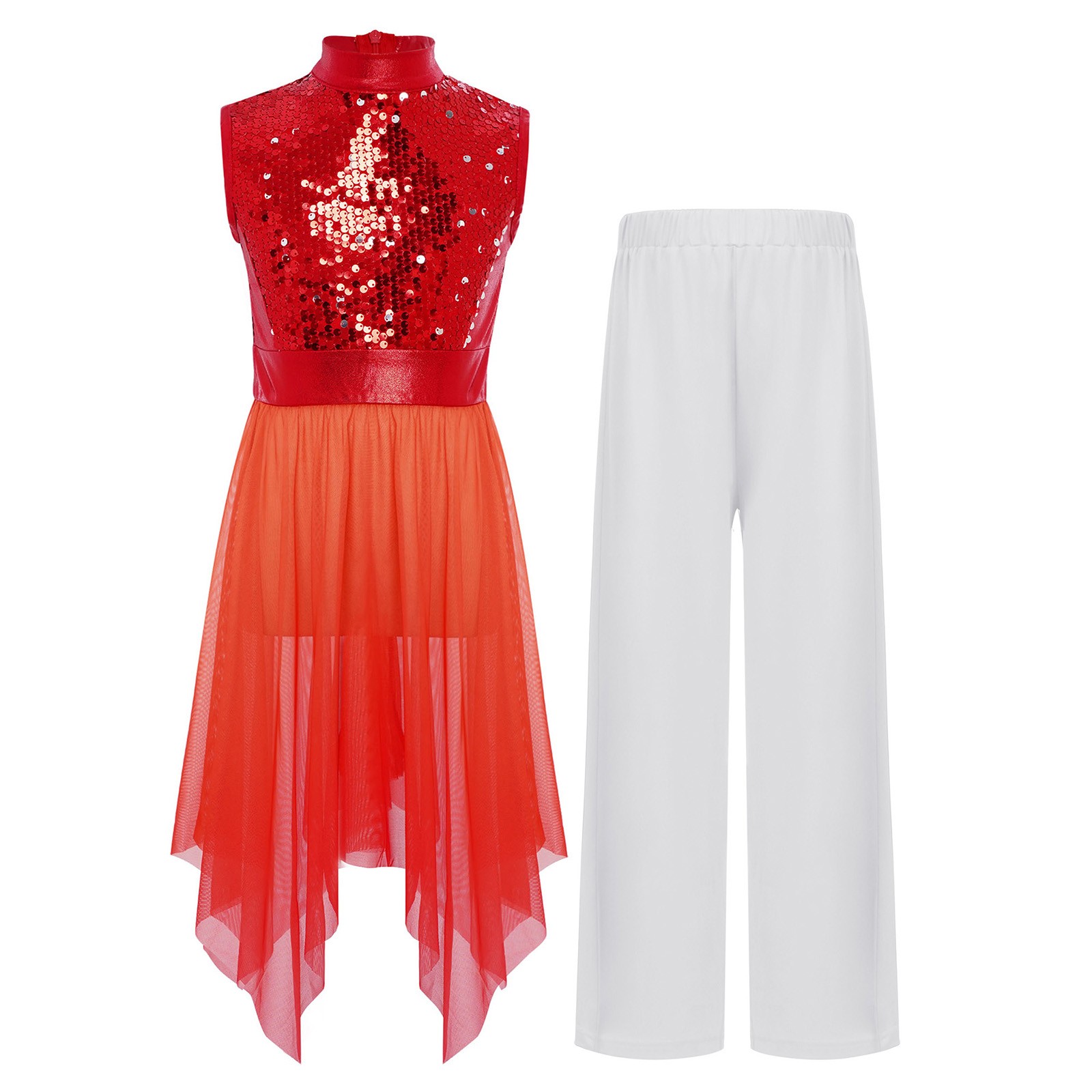 US Girls Worship Choir Dress Sleeveless Praise Dance Sparkly With Wide-Leg Pants