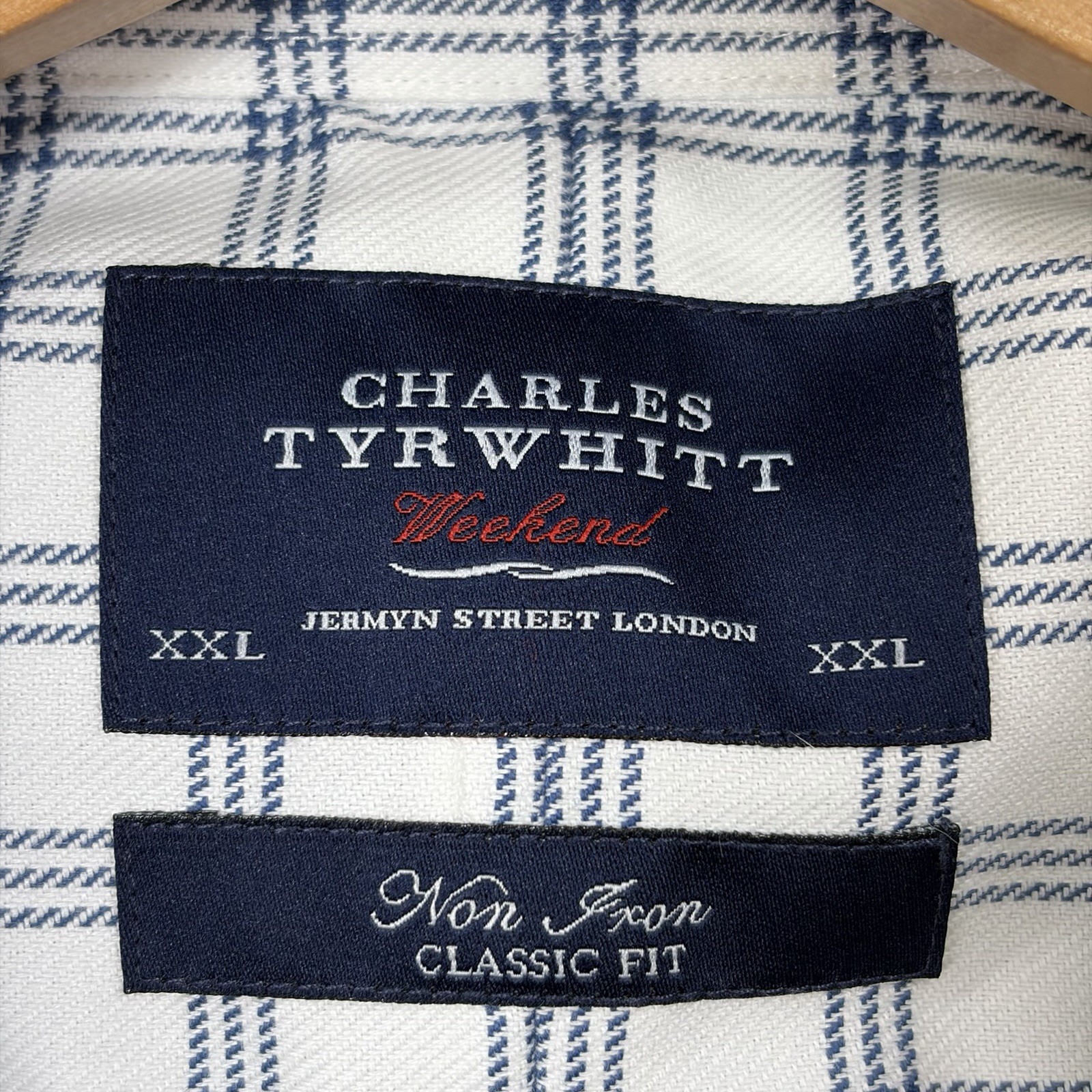 как выглядит Charles Tyrwhitt Shirt Mens XXL Windowpane Plaid Blue Classic Non Iron L/S фото