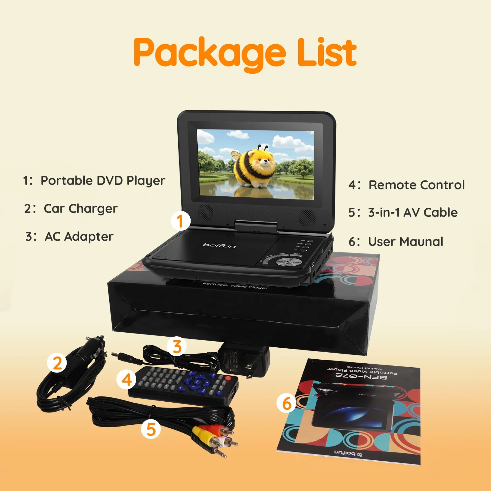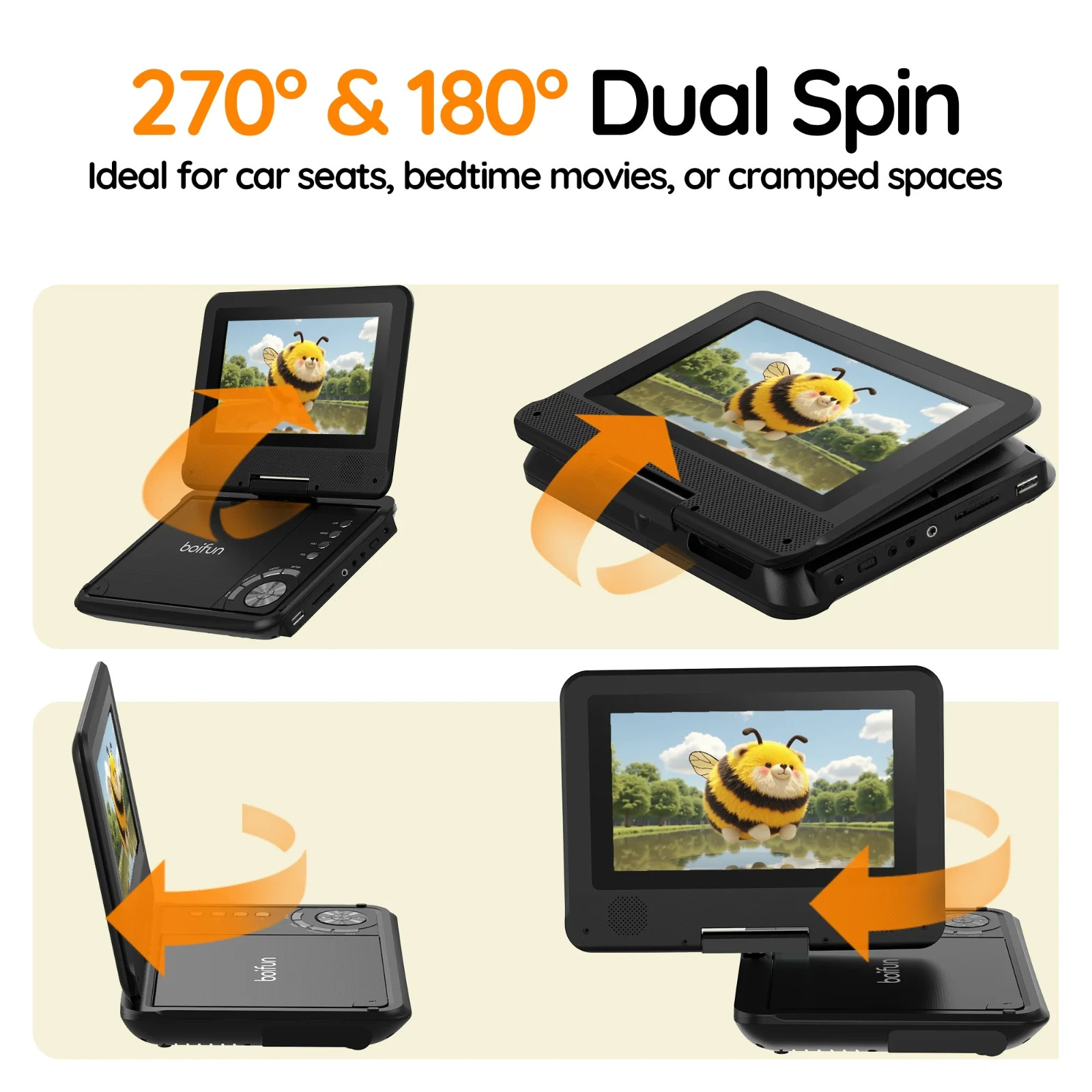 Boifun 9.5Portable DVD Player with HD Swivel Screen,Region Free,Remote Control