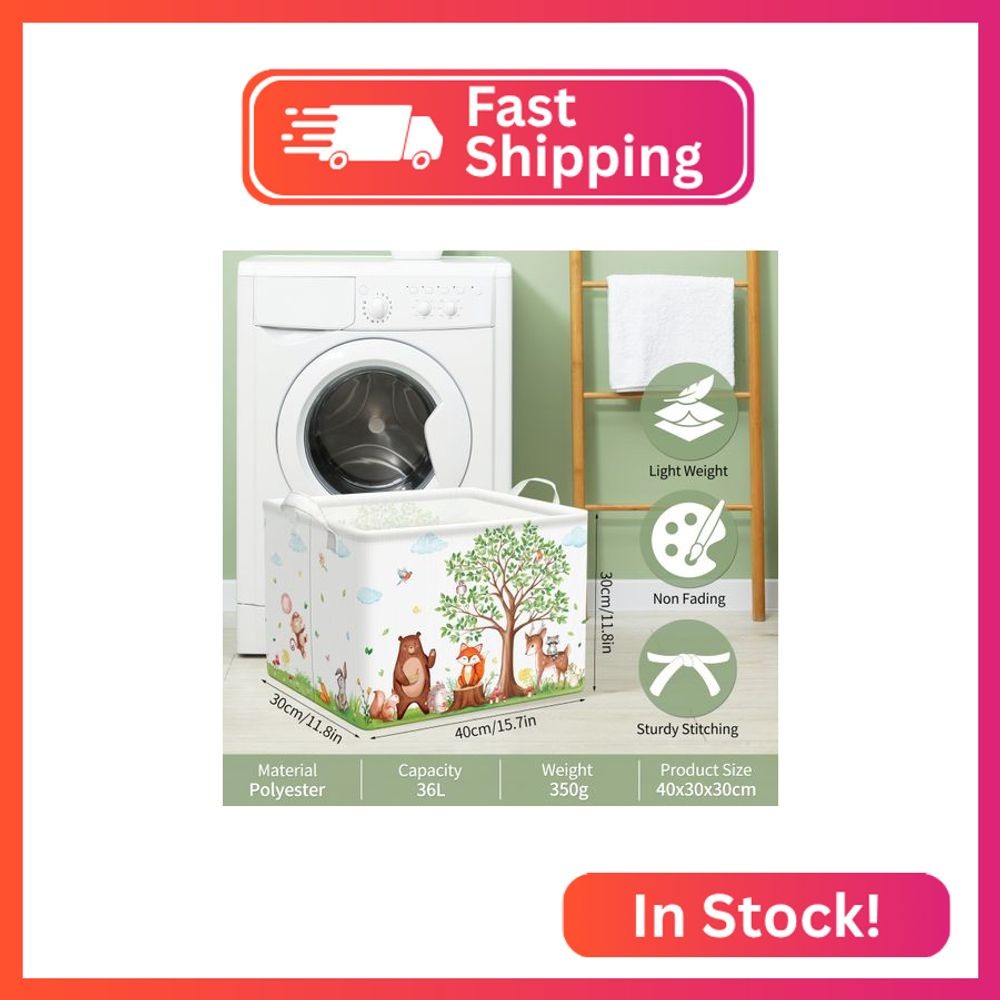 TREWAVE Baby Storage Basket Woodland Animals Gift Basket with Handles Rectangula