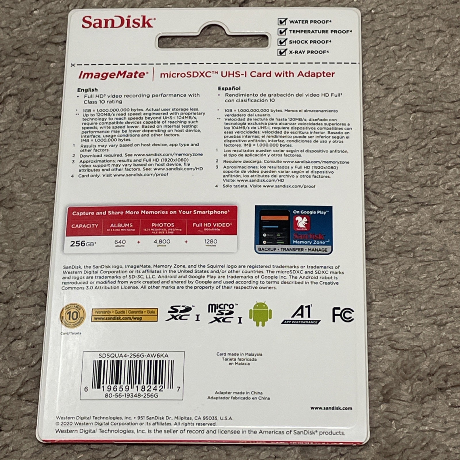 SanDisk ImageMate 256GB MicroSDXC Card w/Adapter - Brand New Factory Sealed