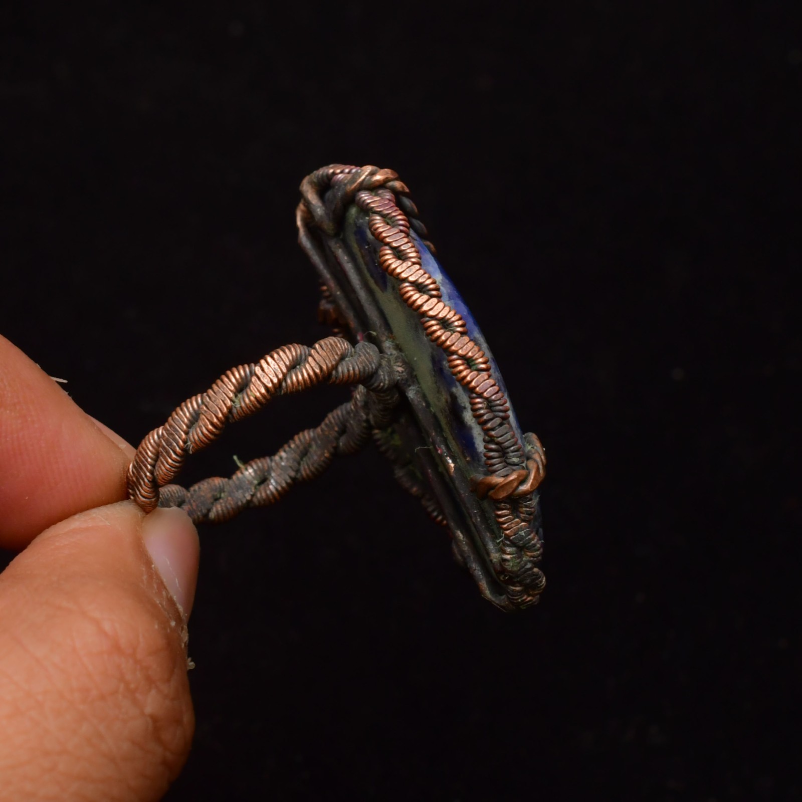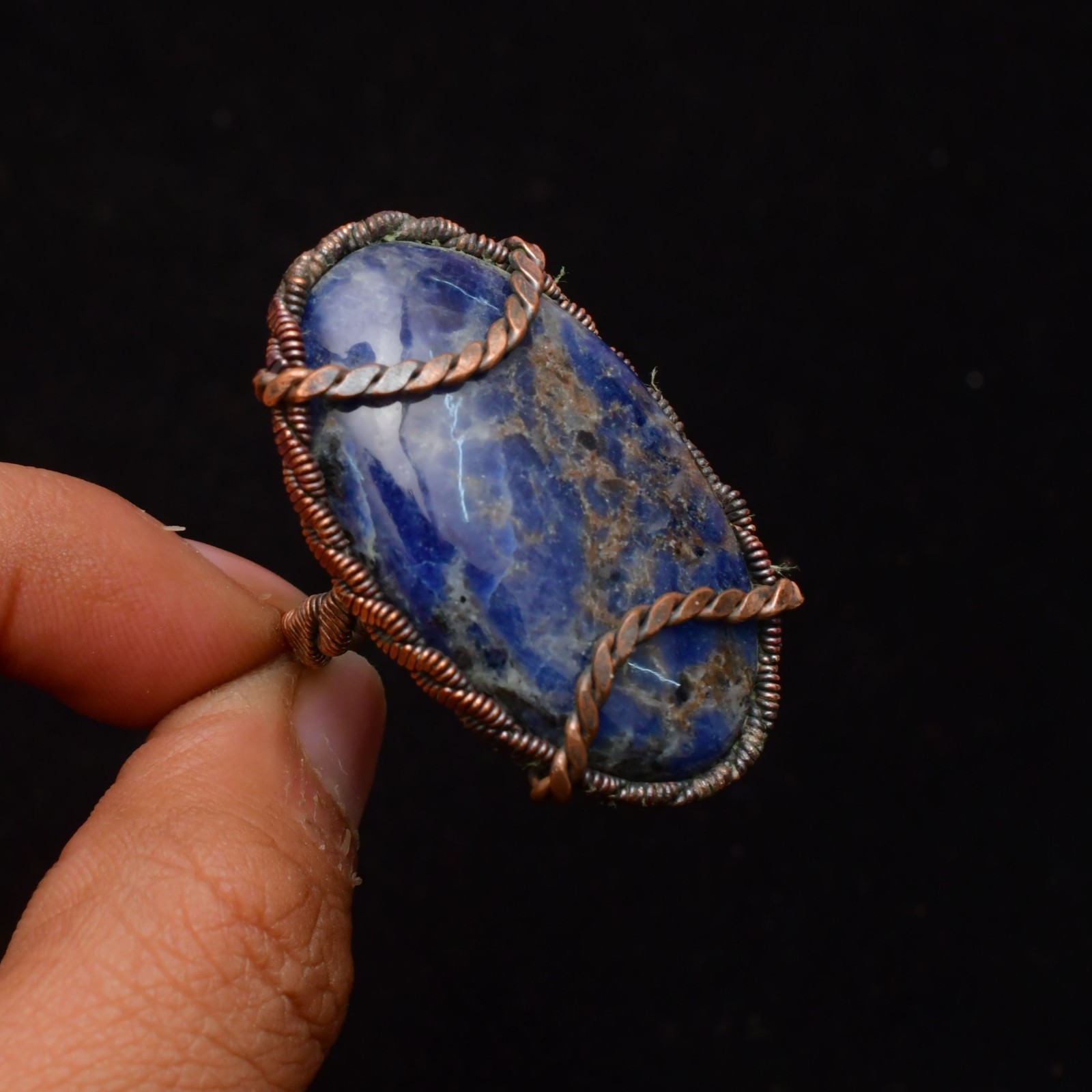 как выглядит Sodalite Gemstone Copper Wire Wrapped Handmade Jewelry Ring Size 9.5 фото
