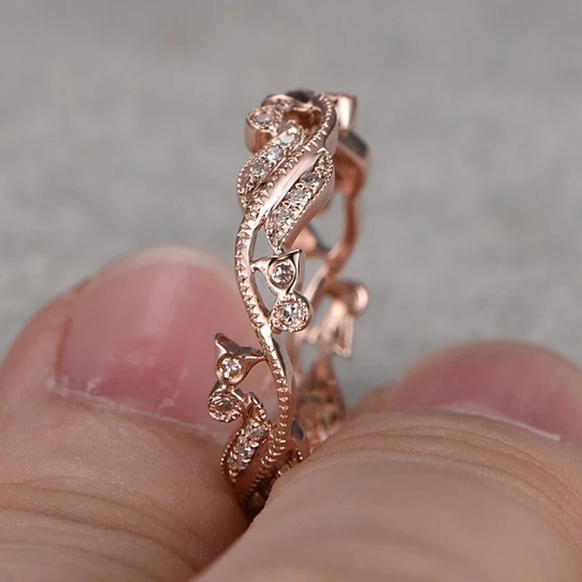 Round Cut Simulated Diamond Women's Engagement Band Ring In 14k Rose Gold Plated