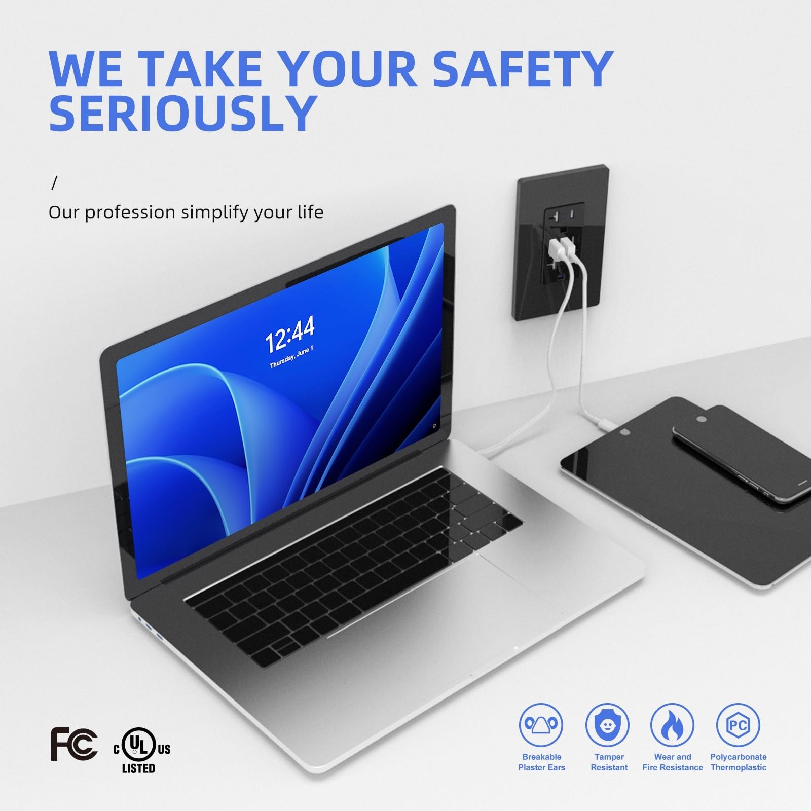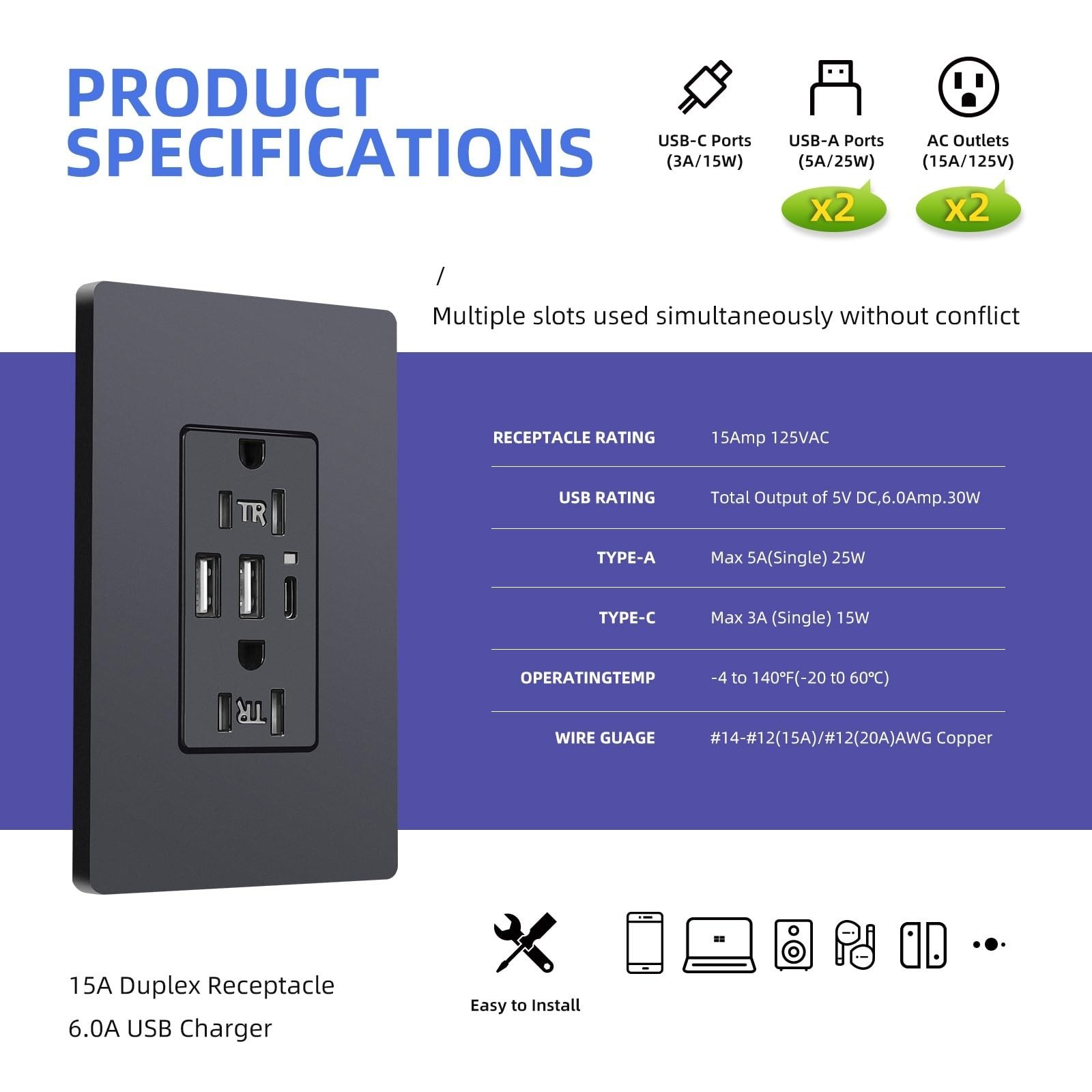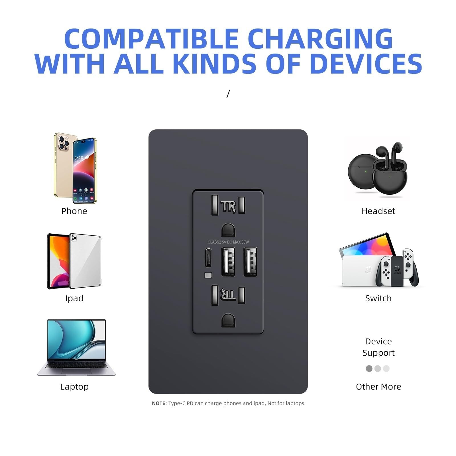 USB Wall Outlet, 15Amp Black Tamper-Resistant Receptacle, 6.0A TR Outlet Plug...