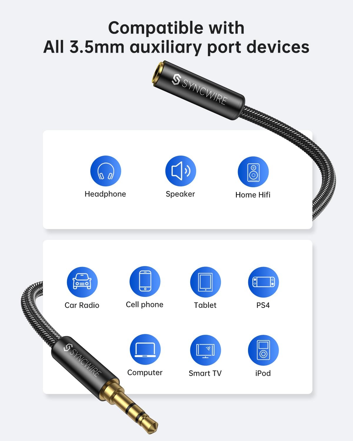 Syncwire Headphone Extension Cable - 6FT Hi-Fi Sound Gold 6 feet, Black
