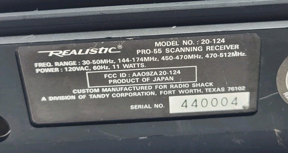 Vintage Realistic 20-124 PRO-55 10-Channel Patrolman Scanning Receiver