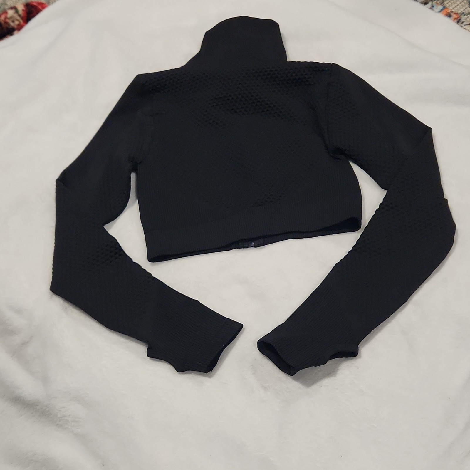 как выглядит Womens Black Textured 2 Piece Tracksuit Set Jacket Leggings M фото