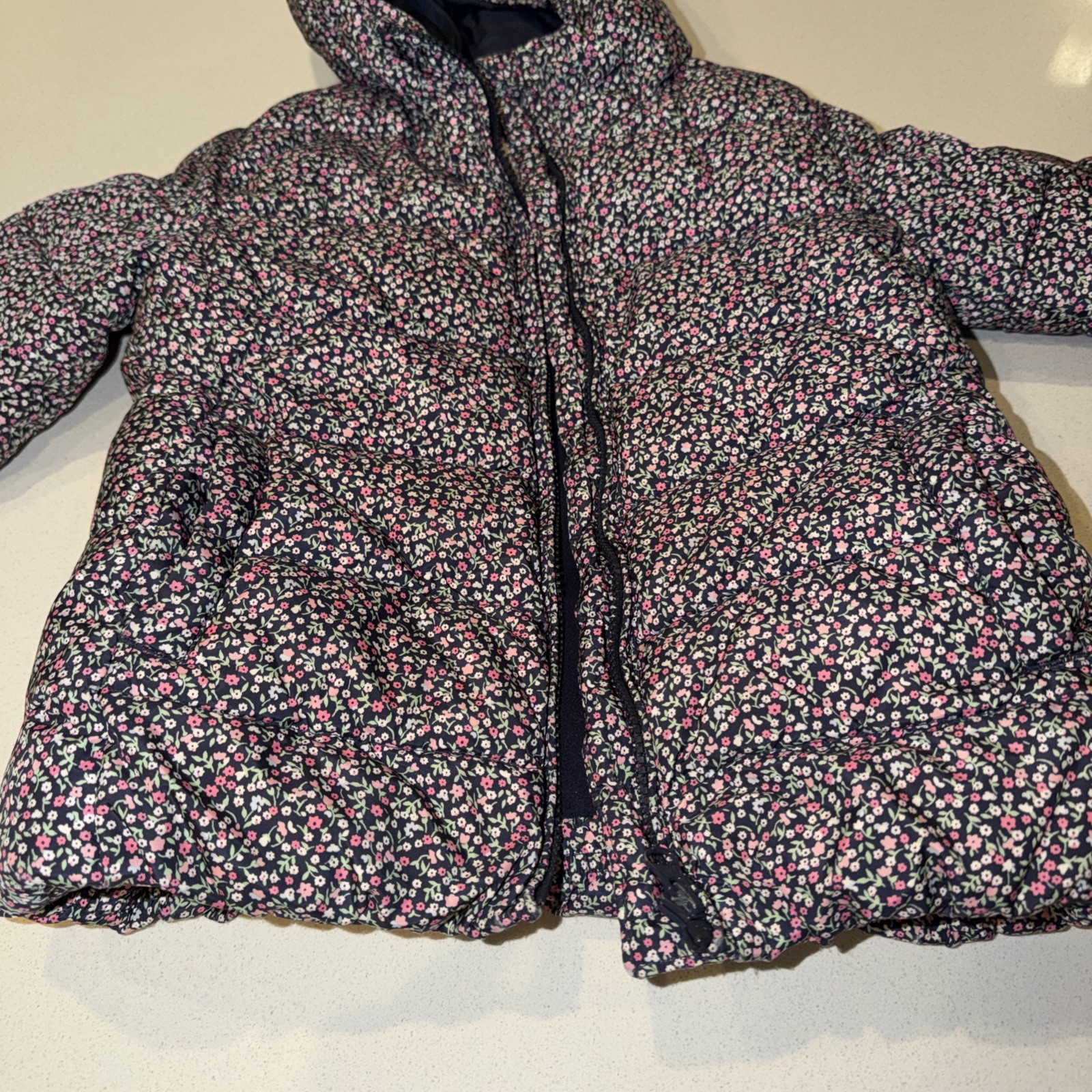 Gap Kids Girls Blue Floral Puffer Jacket Zipper Hooded Light Size S 6-7 Read