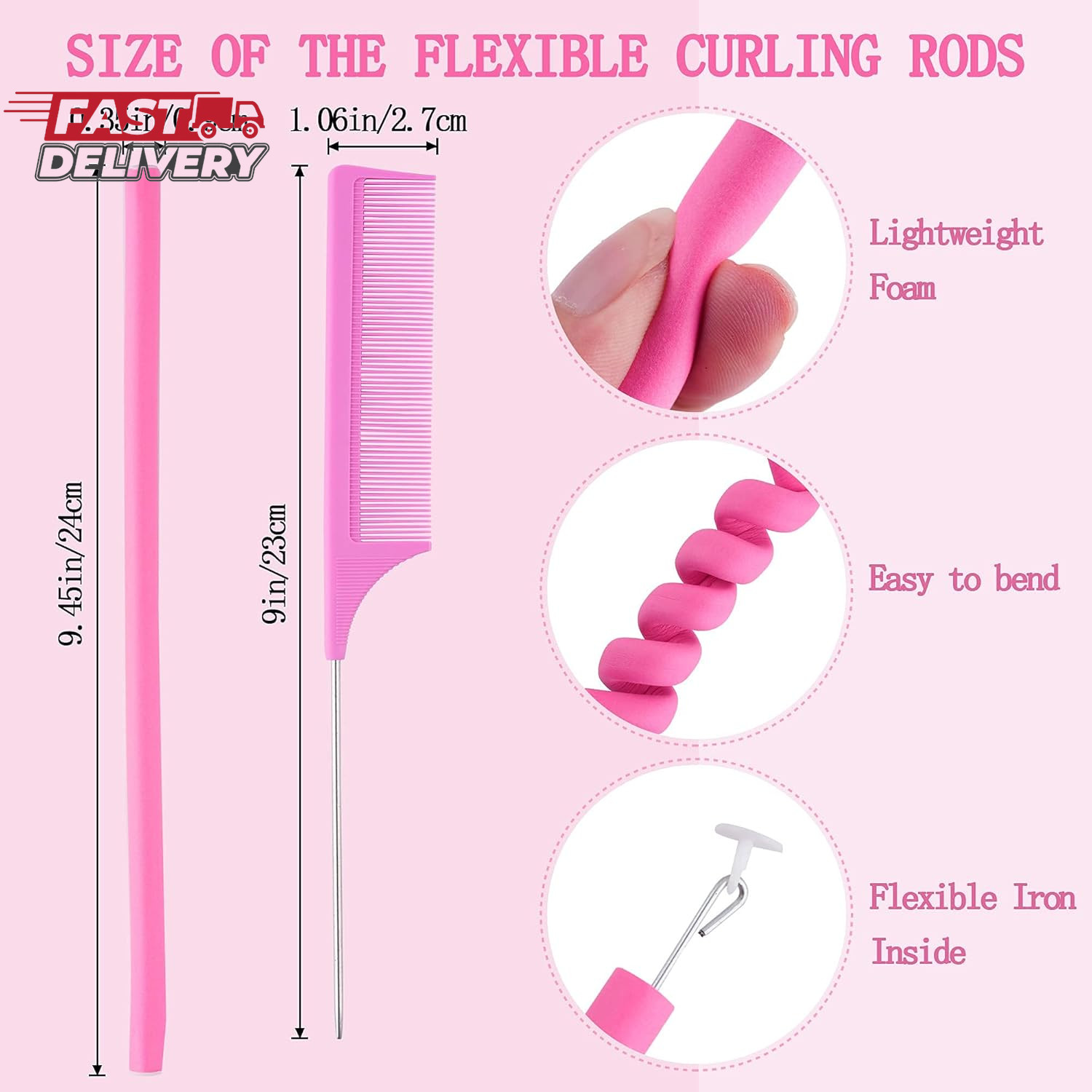 30PCS 9.45 Flexi Rods Curlers Set for Short and Long Hair, No Heat Foam Rollers