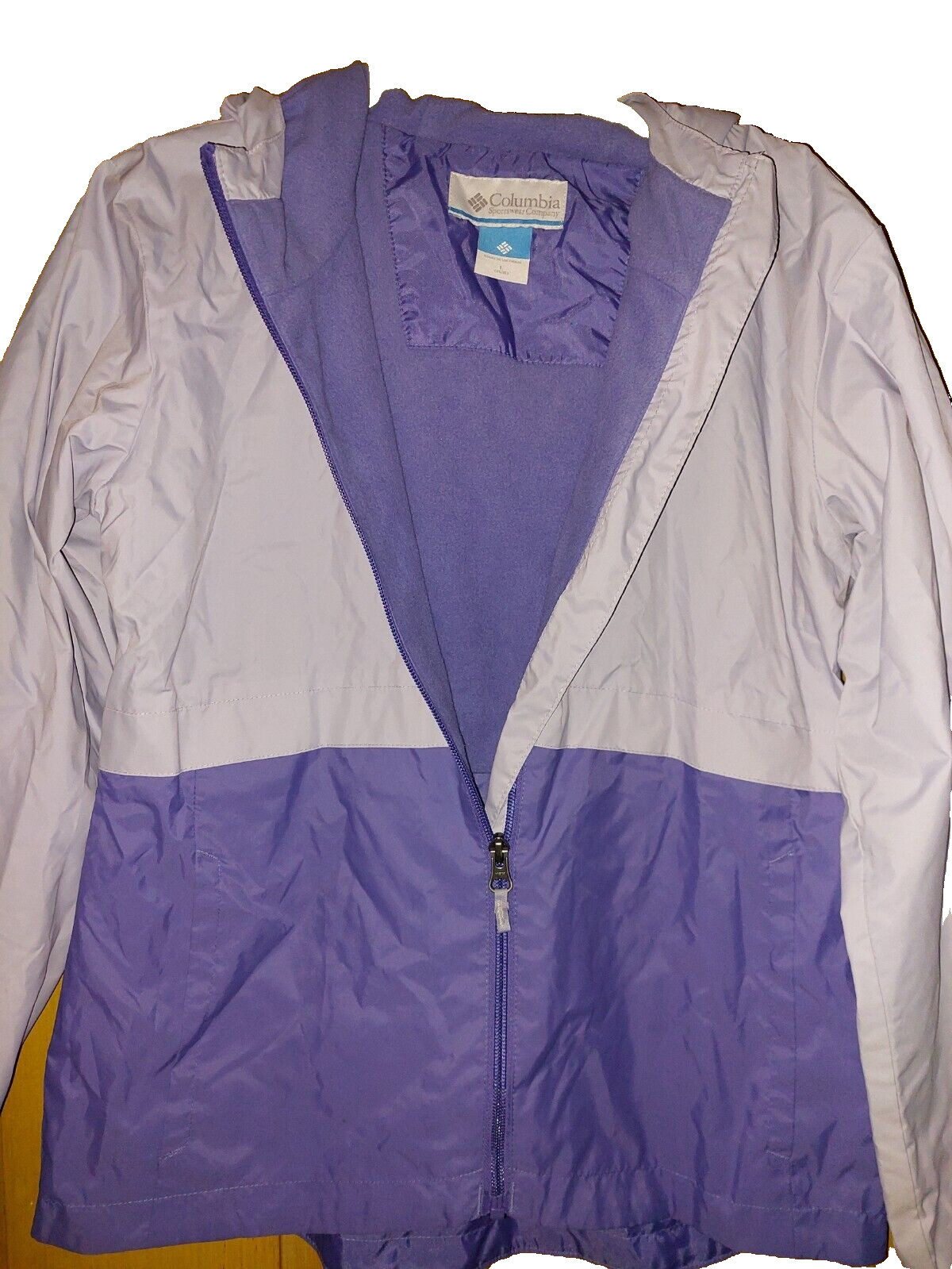 как выглядит COLUMBIA Zilla Girls Lined Wind/Rain Hooded Jacket Purple lilac Size L 12-14 фото