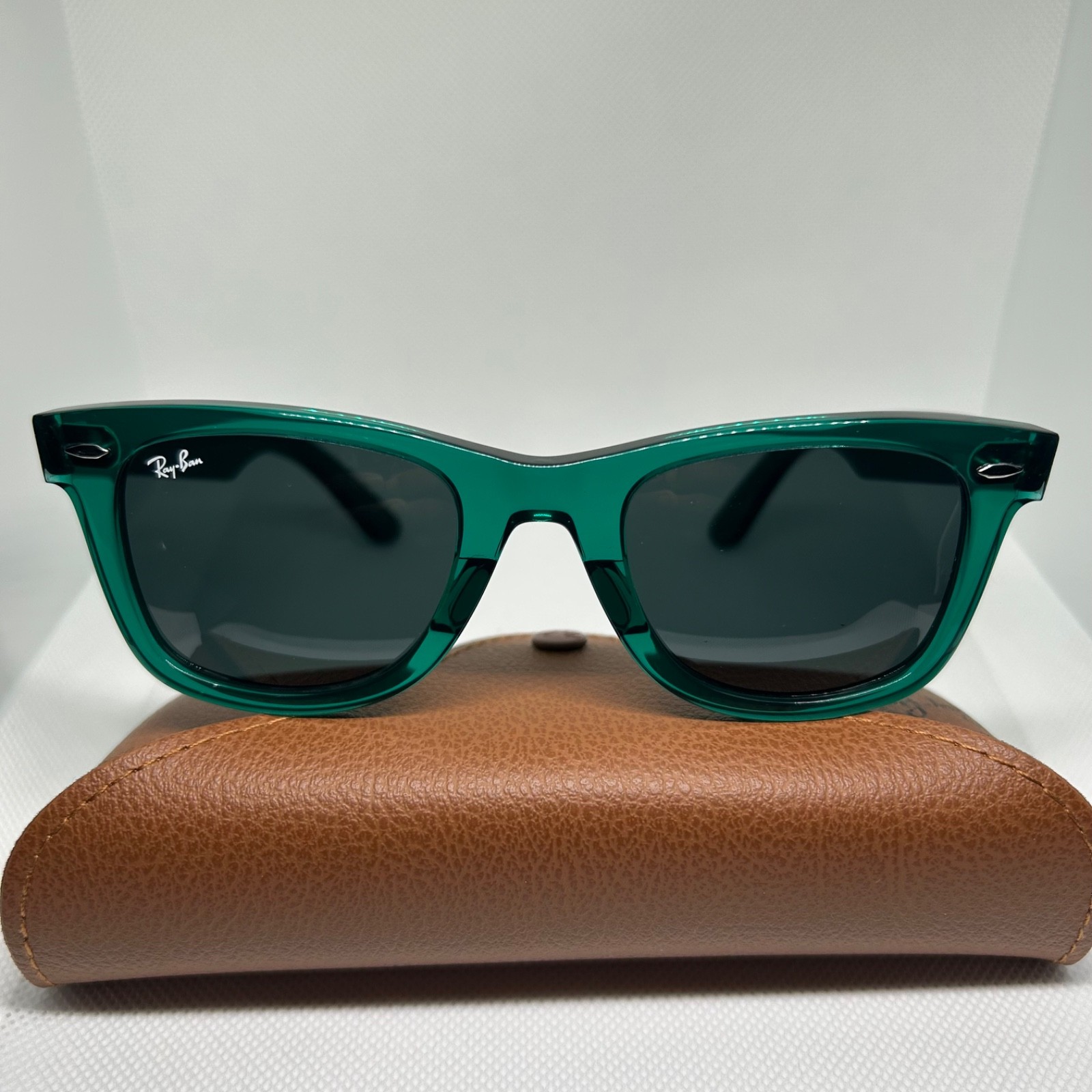 NEW Ray-Ban RB2140 Wayfarer Sunglasses 6615/B1 Green on Transparent Dark Grey...