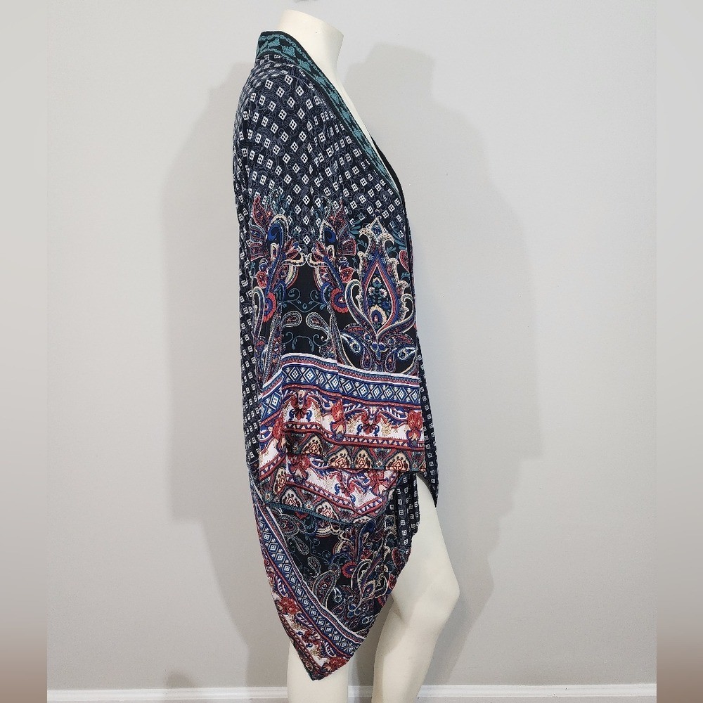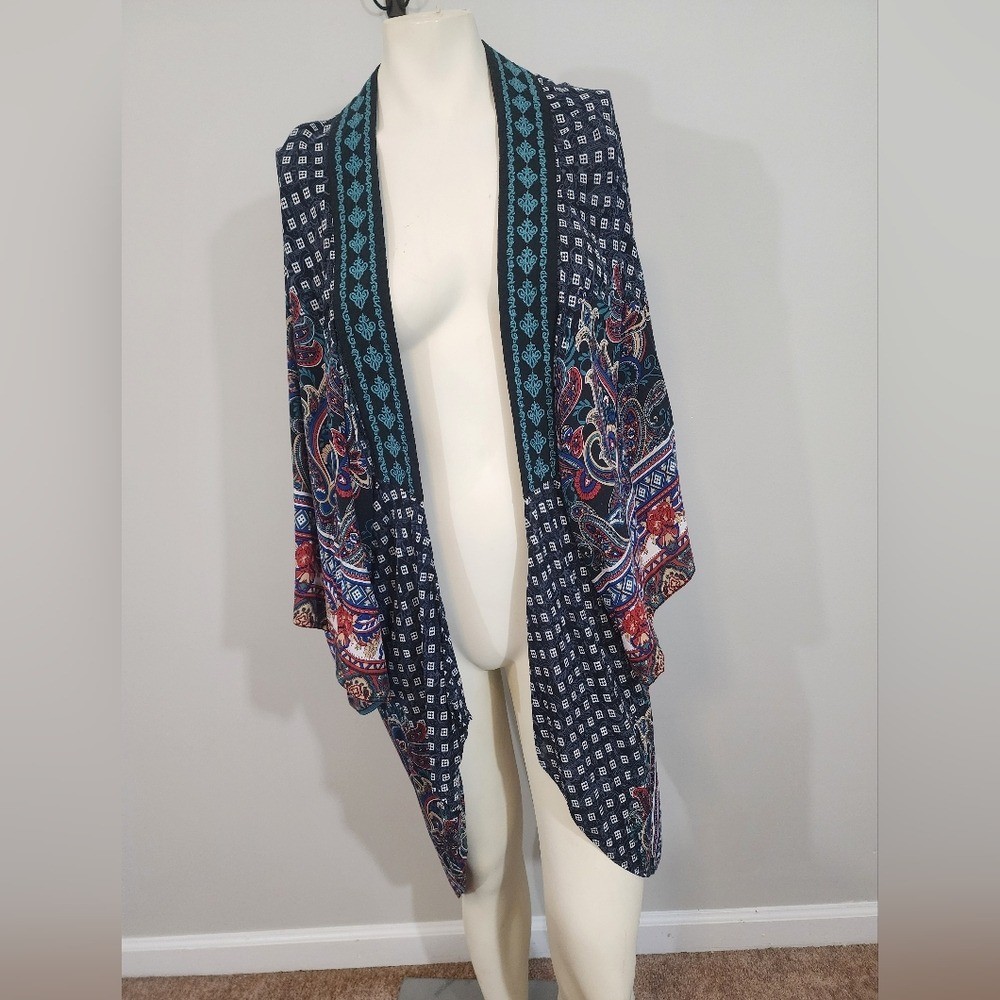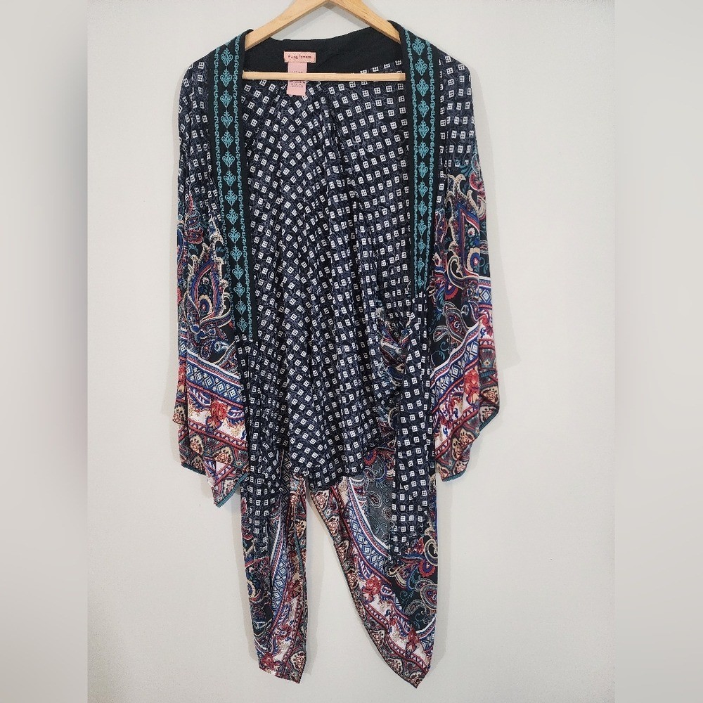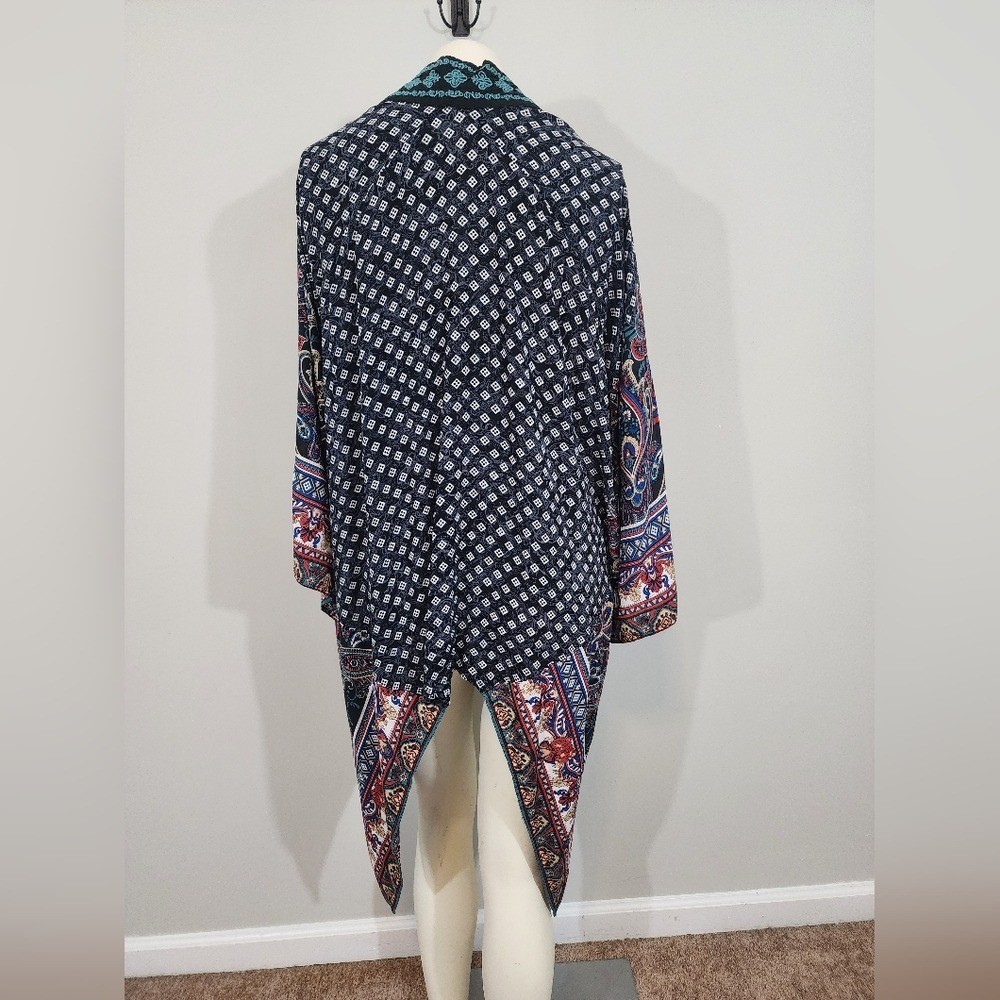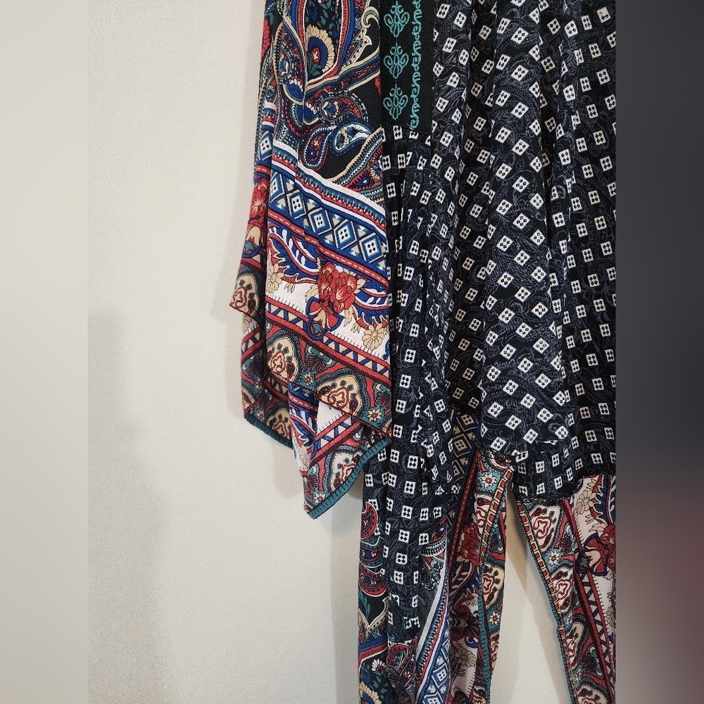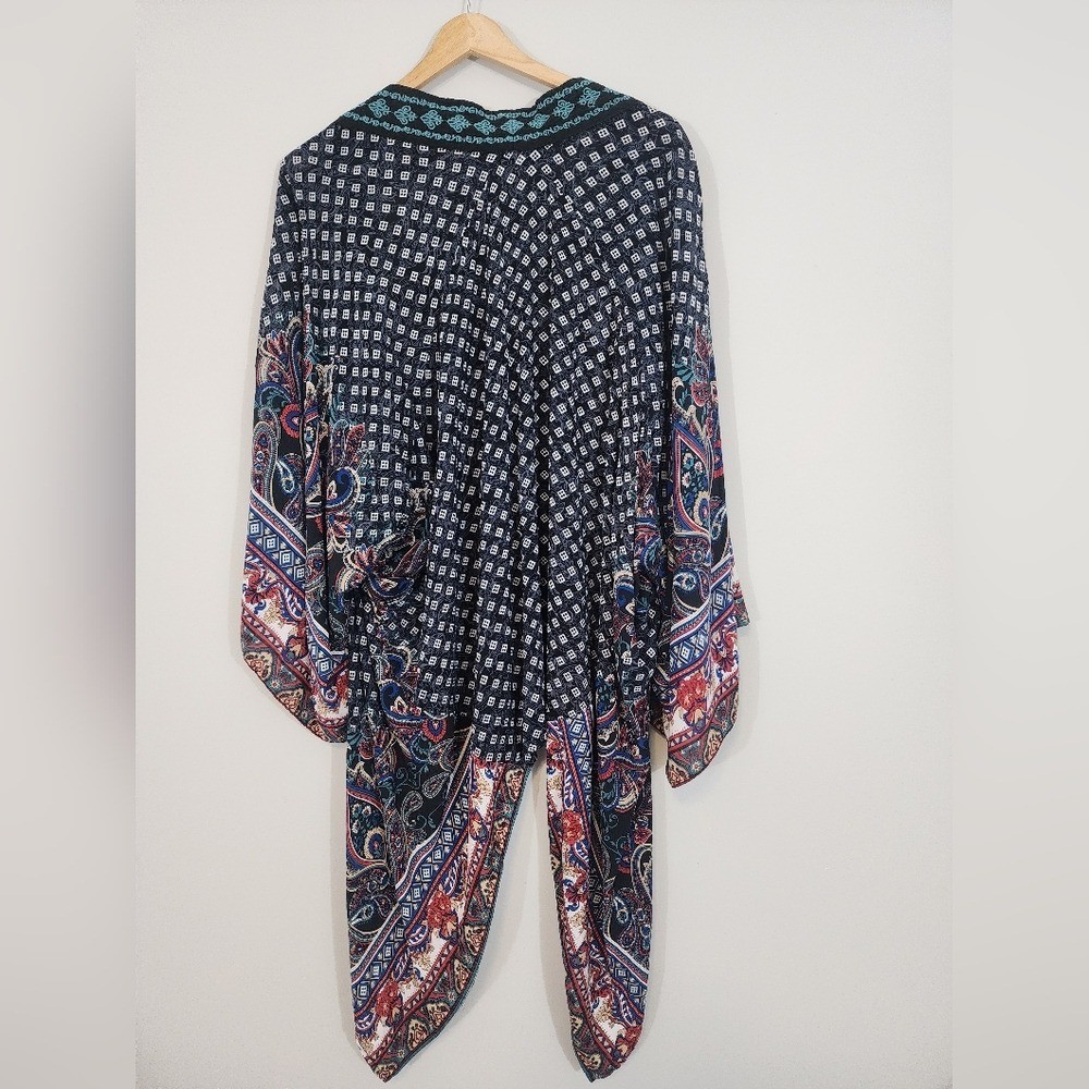 как выглядит Flying tomato embroidered paisley boho kimono womens small shawl artsy hippie фото