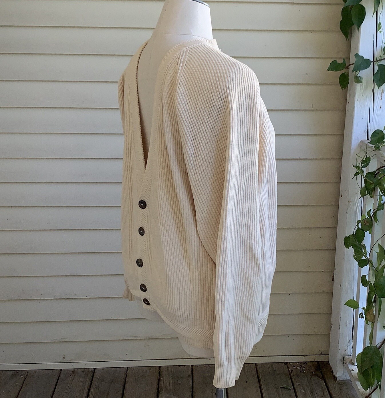 как выглядит Cambridge Ribbed Knit Grandpa Cardigan Sweater XL Cream Dad Grunge Cobain Money фото
