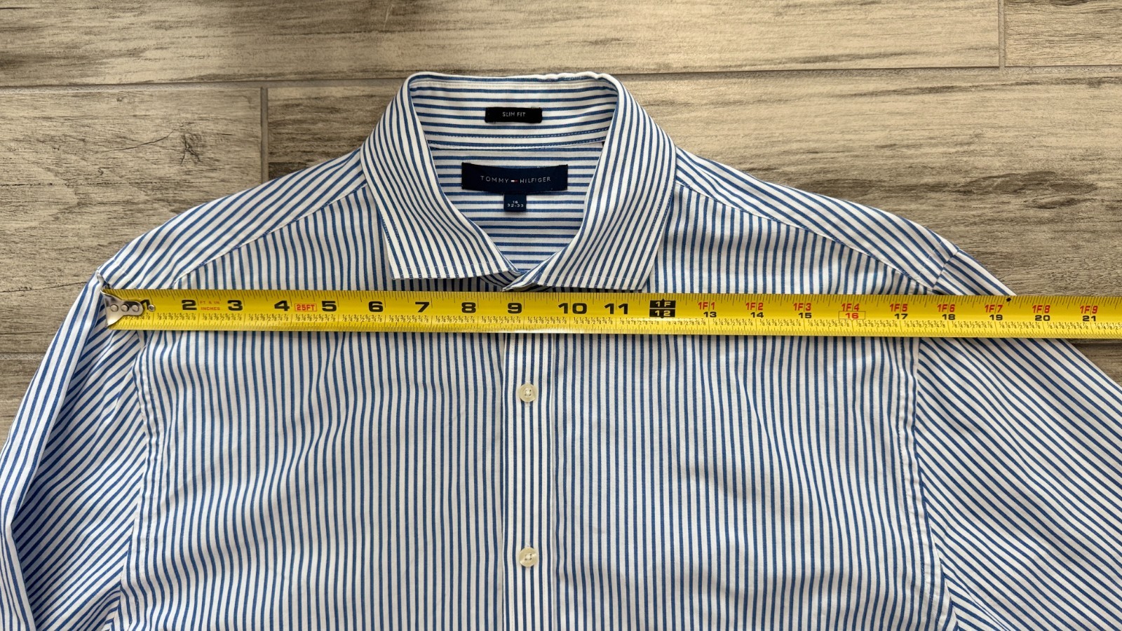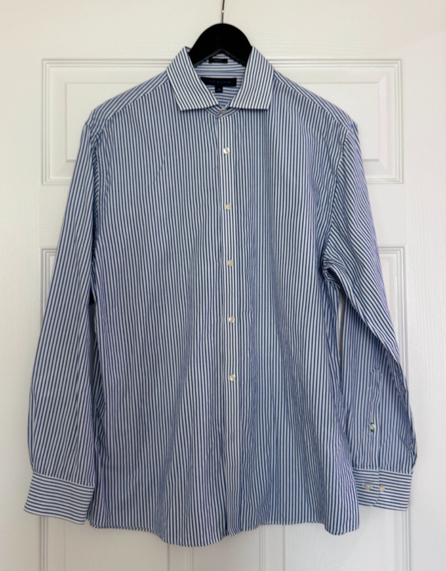 как выглядит Tommy Hilfiger 16 32/33 Slim Blue Stripe Cotton Shirt AS-IS фото