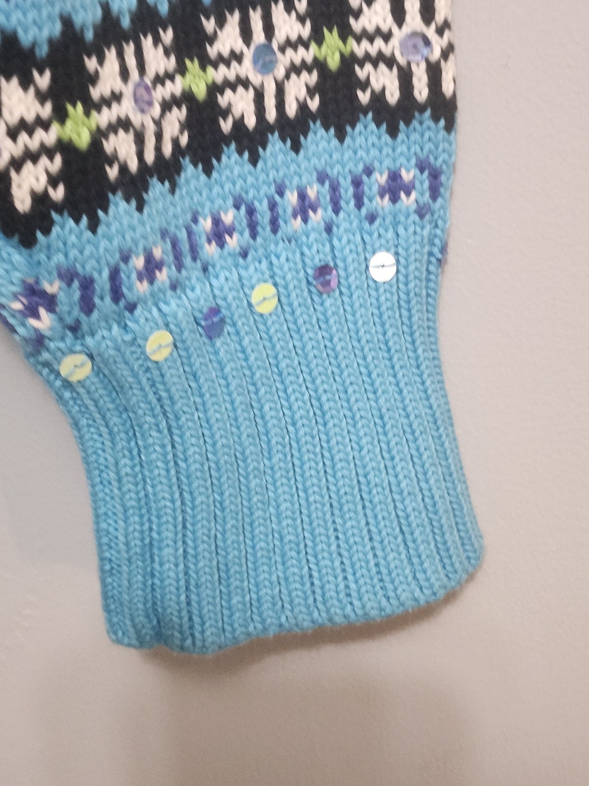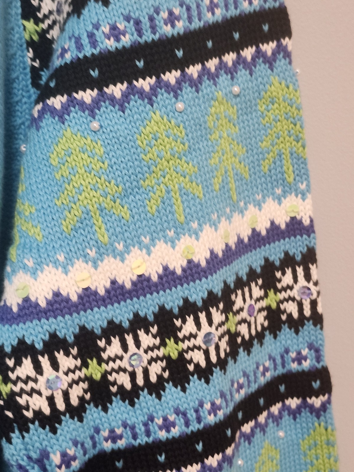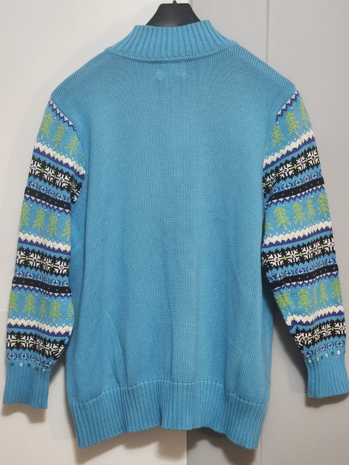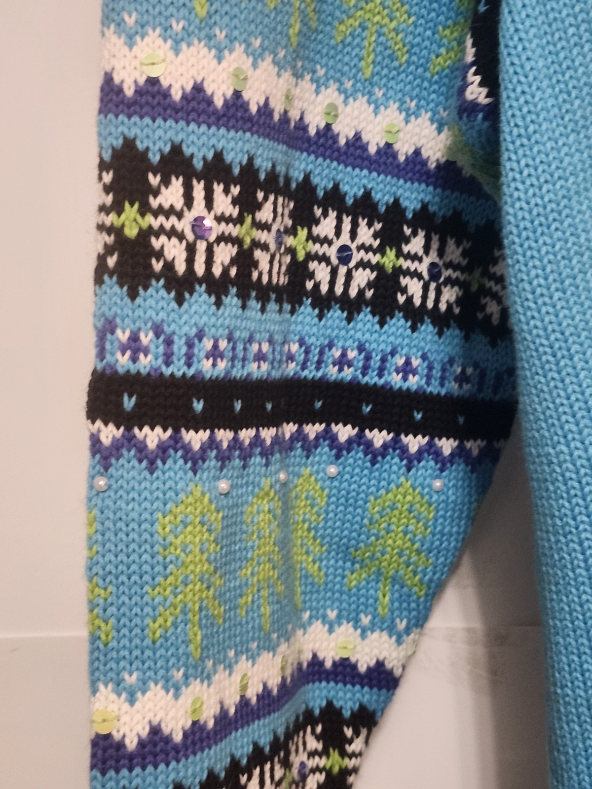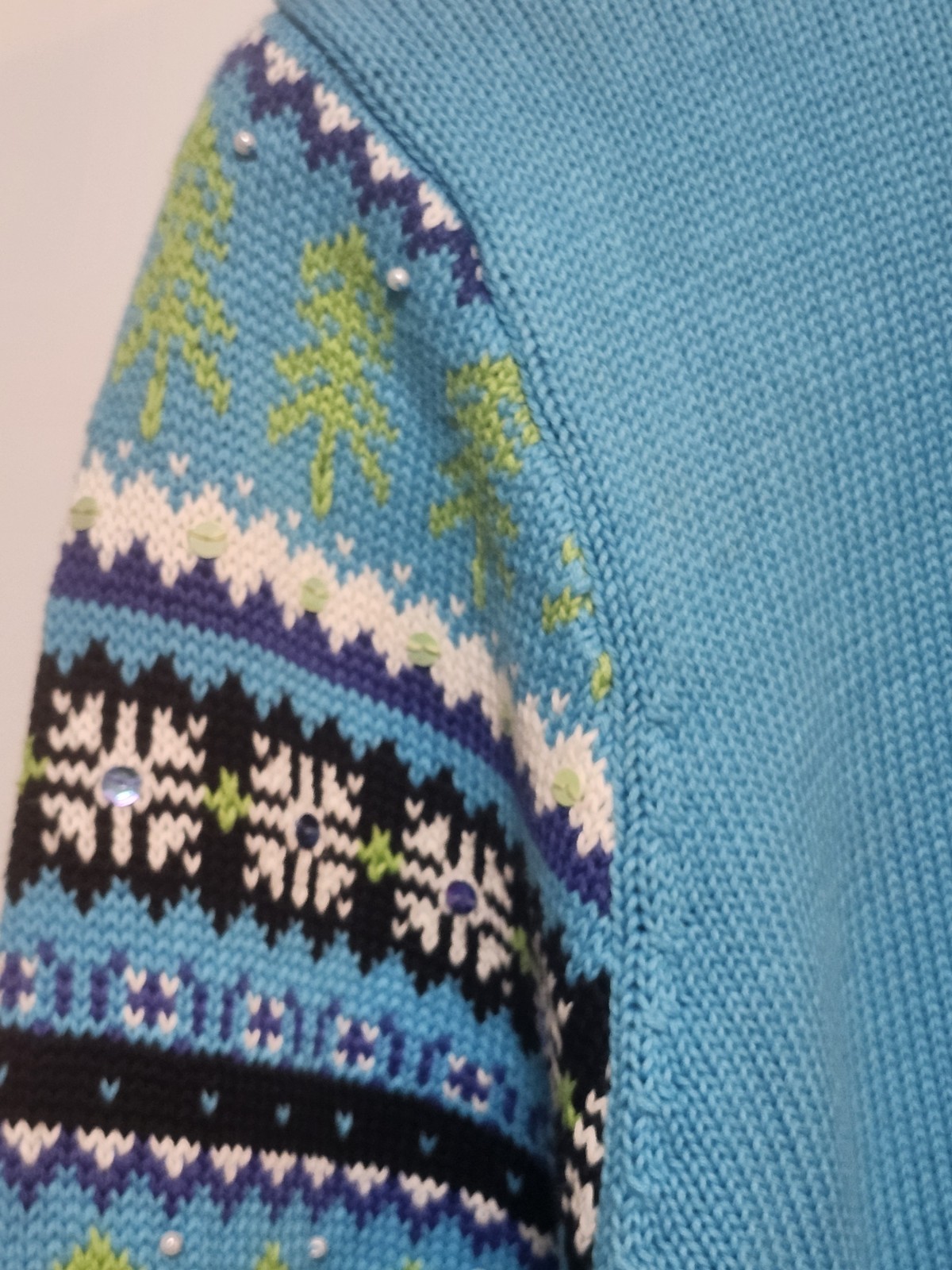 как выглядит Quacker Factory Winter Fair Isle Sweater 2xl Festive Blue Beaded Snowflake фото