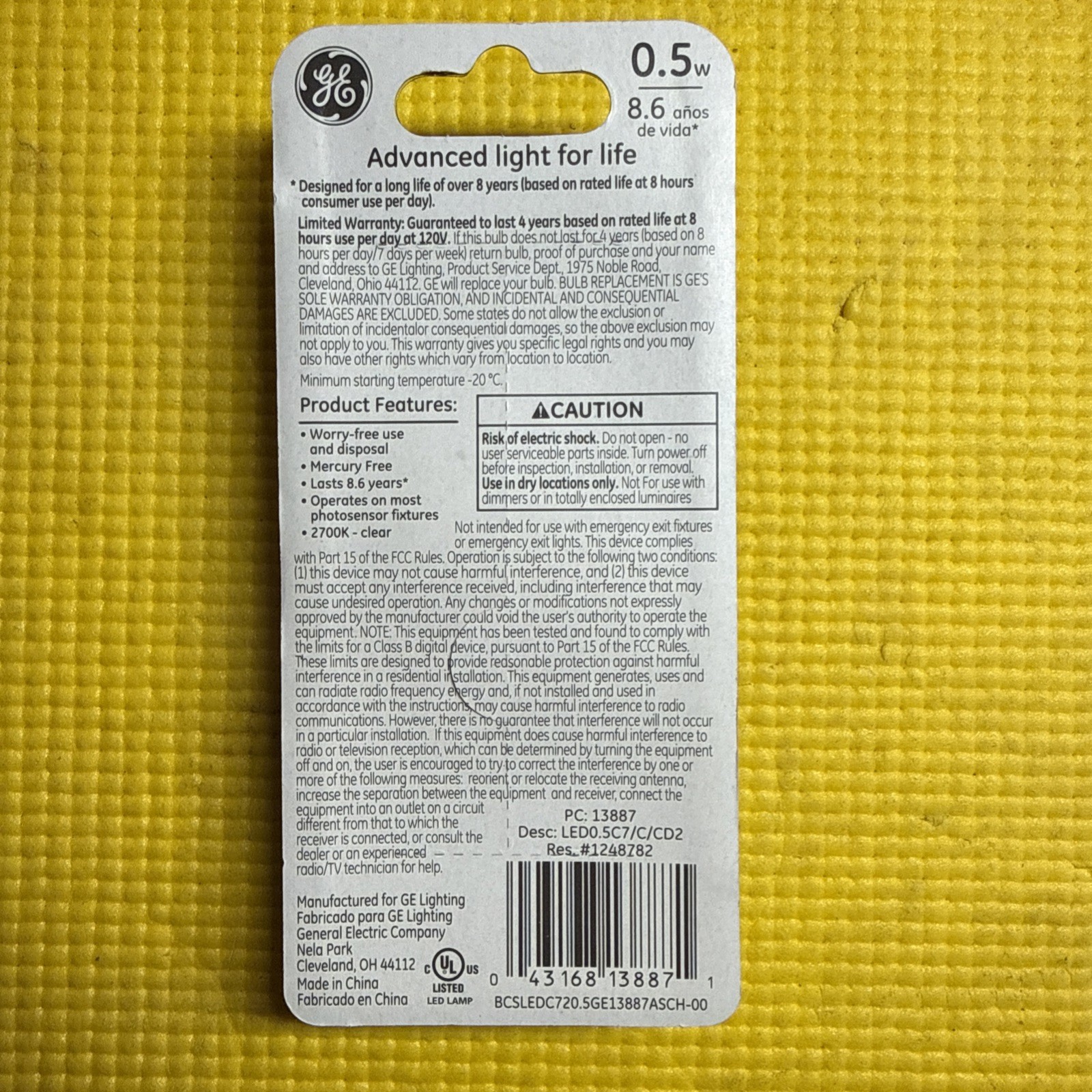 GE C7 LED Night Light Bulbs 2-Pack 13887 Clear Candelabra Base E12 NEW FREE SHIP