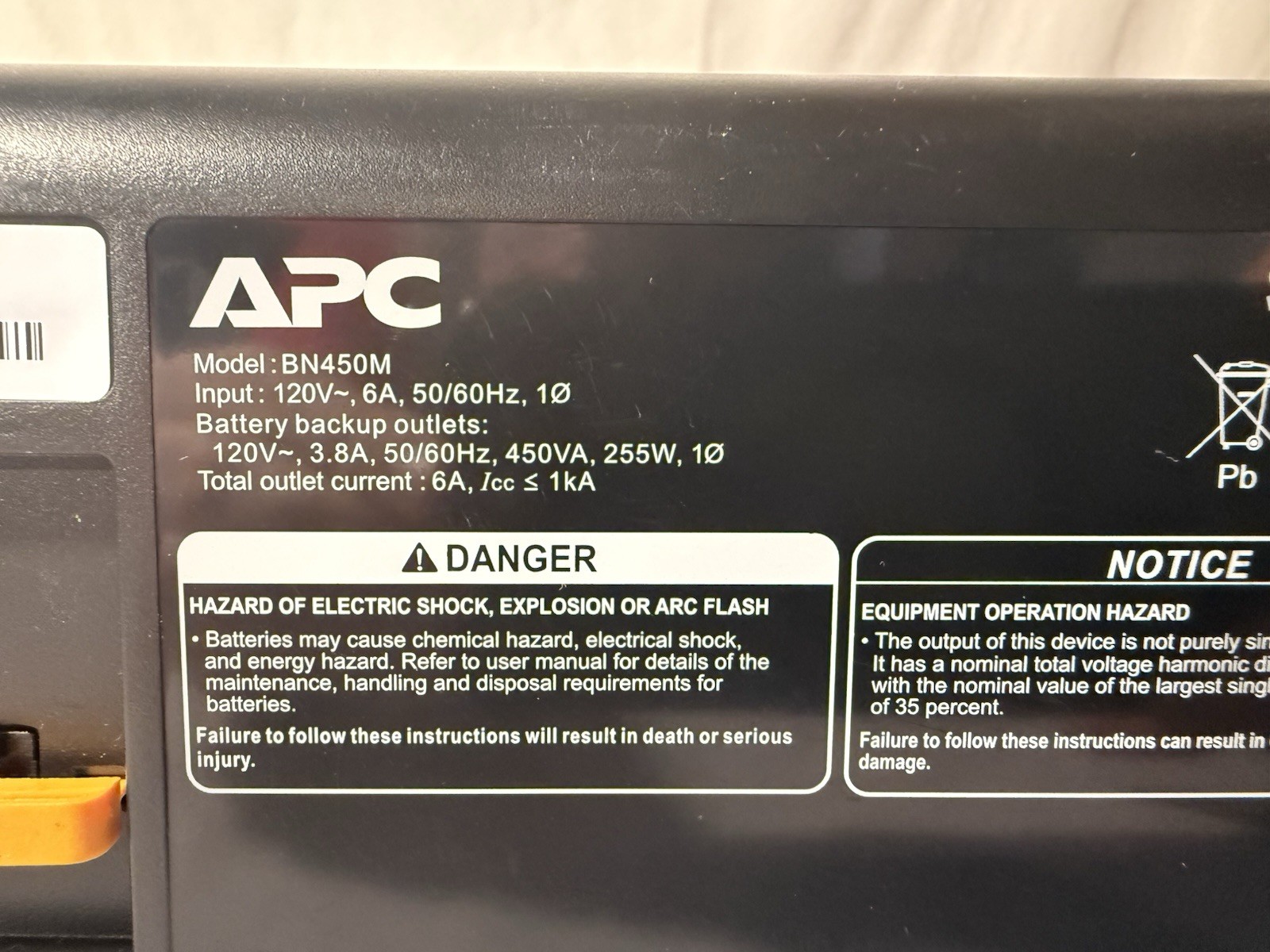 APC Back-UPS 450 BN450M 120V 6A 450VA 255W 6-Outlet Surge Protector NO BATTERY