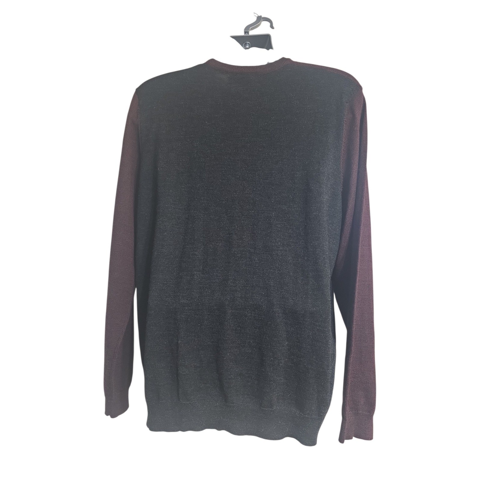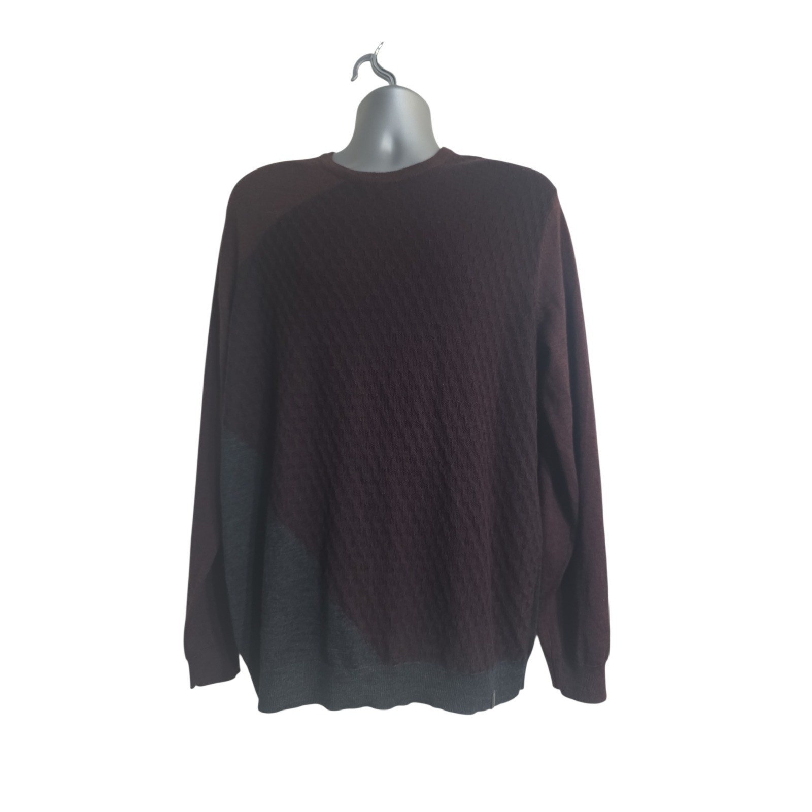 как выглядит Calvin Klein Mens XL Colorblock Textured Knit Crewneck Sweater Burgundy Grey A8 фото