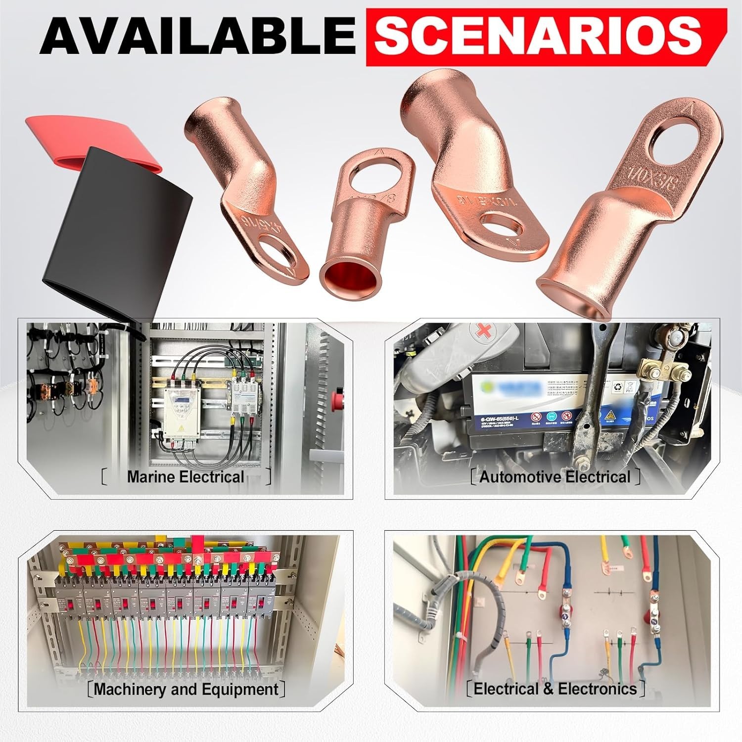 10 PCS Listed 2/0 AWG - 3/8 Battery Cable Lugs, Heat Shrink Ring Terminals ...