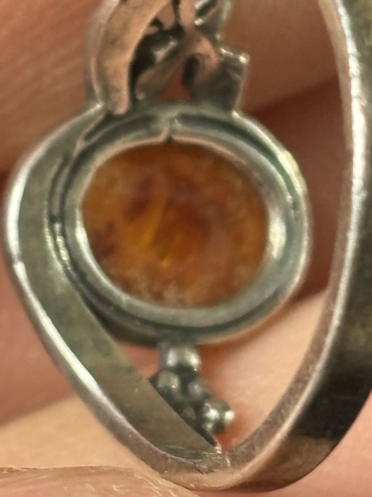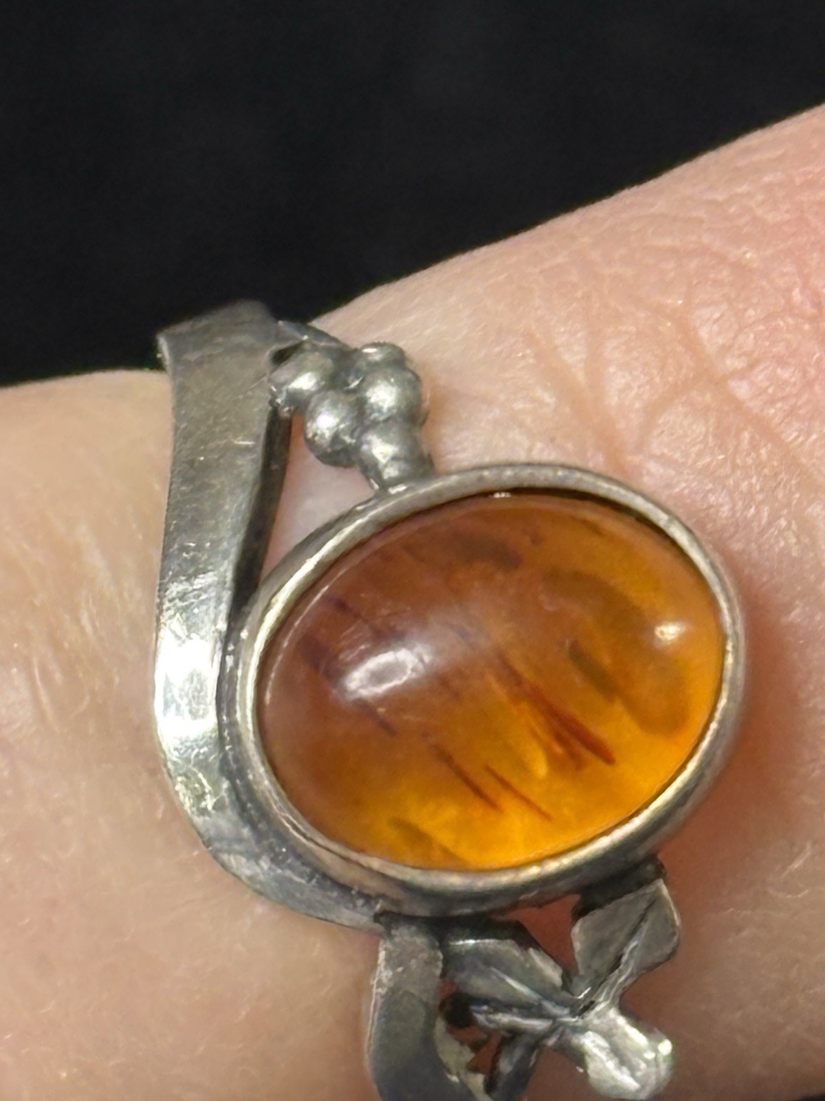 как выглядит Vintage Sterling 925 Silver Baltic Amber Ring With Grapevine Design фото