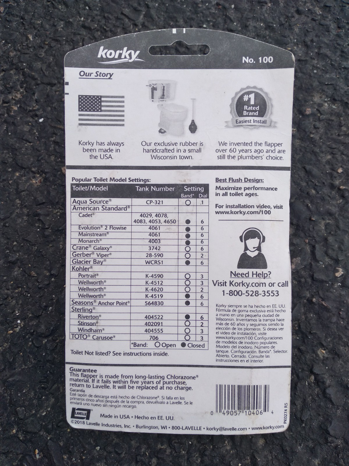 Korky Toilet Flapper 2 Chain Ultra 100 Universal Red Resists Chlorine
