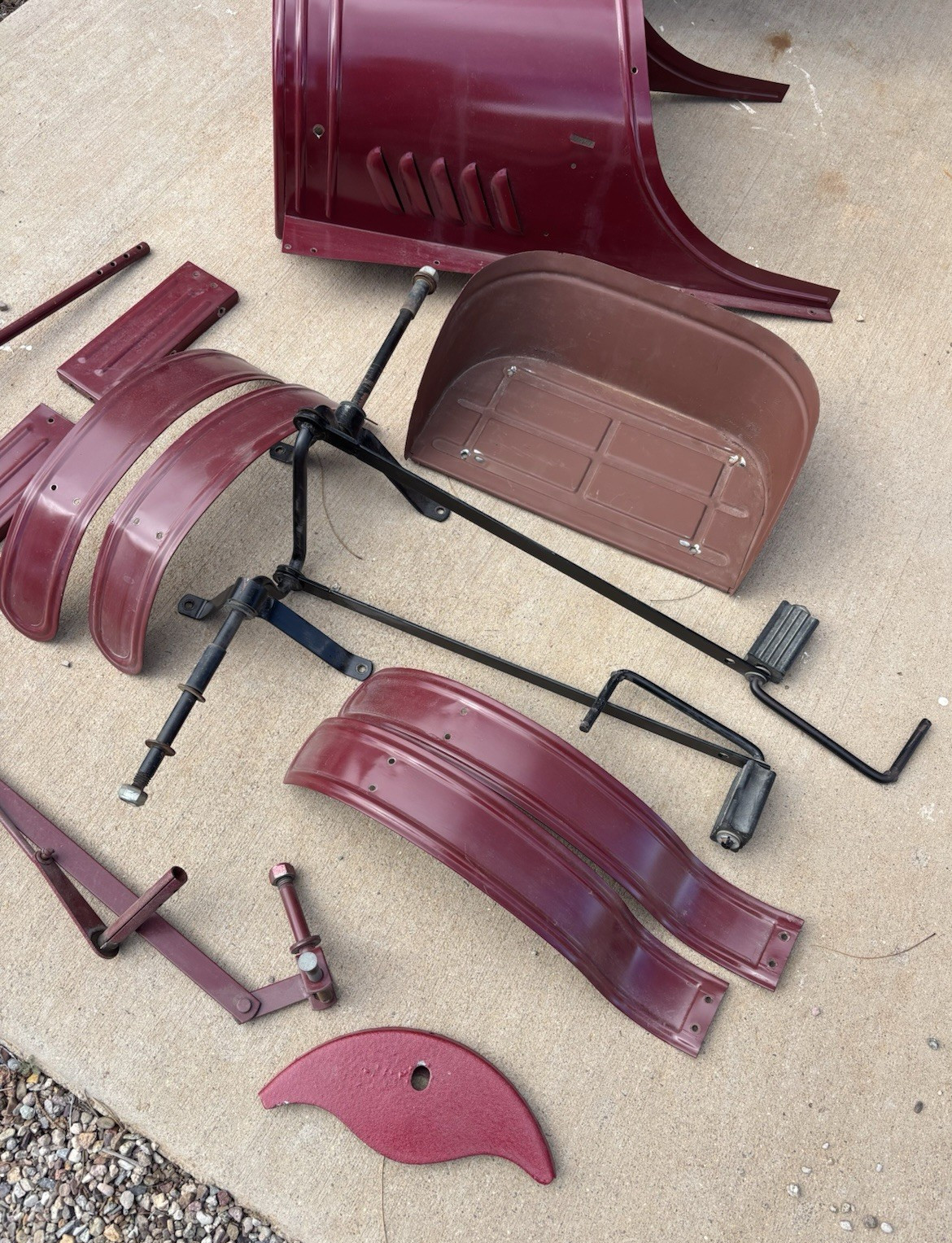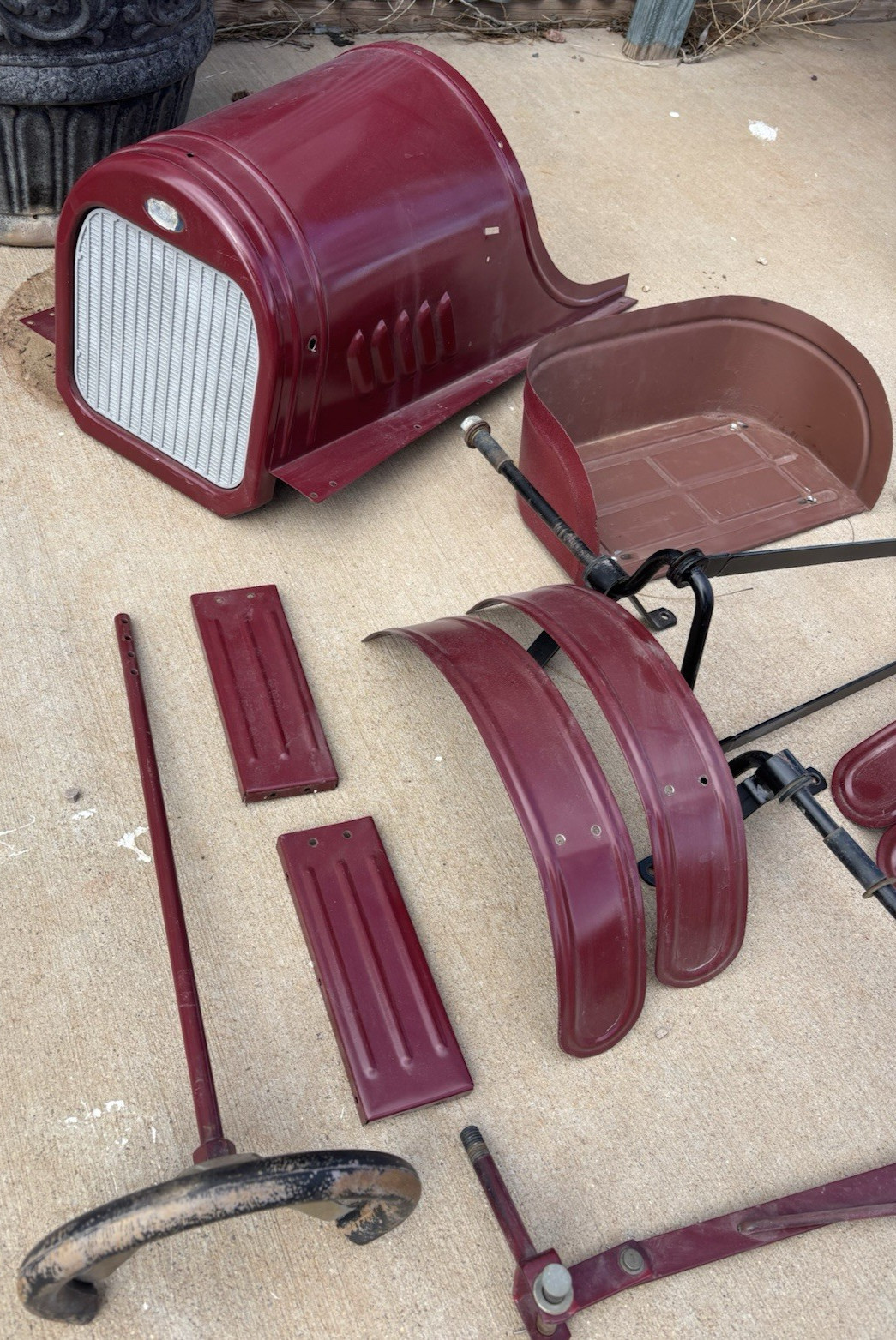 vtg Roadster metal Pedal Car parts to restore body Fenders Seat mechanicals etc