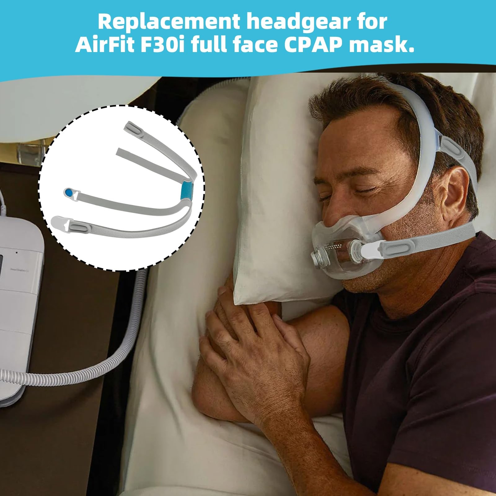 как выглядит JFHNMLW Compatible CPAP Headgear for Airfit F30i, F30i Grey фото