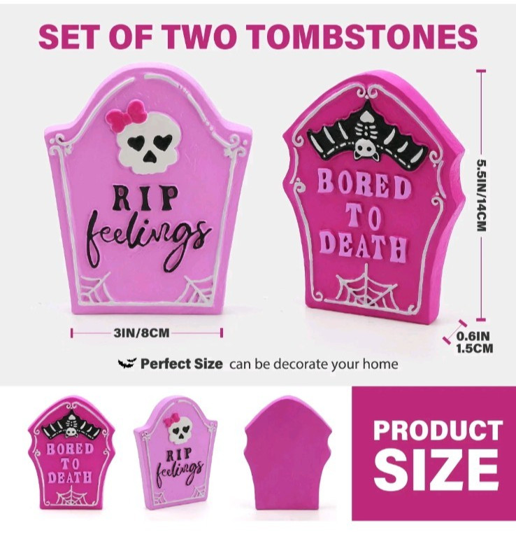 как выглядит 2Pcs Halloween Tombstones Decorations for Pink Halloween Decor, Halloween Decor фото