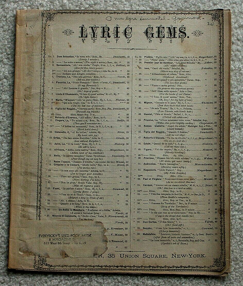 как выглядит 1880 Sheet Music "O Harp Immortal" Sappho Lyric Gems Gounod Buck New York фото