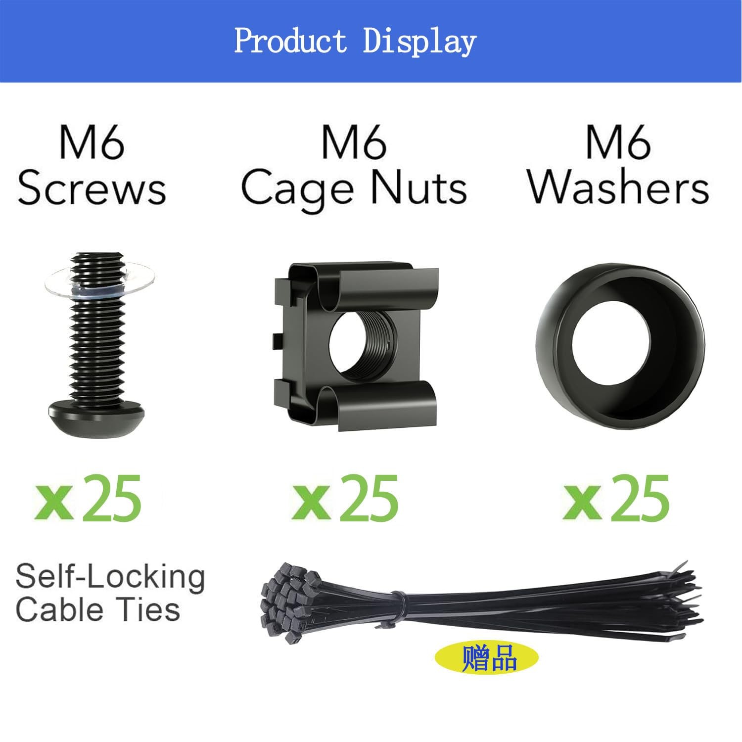как выглядит 25 Pack M6 x 16 mm Rack Mount Cage Nuts Screws Washers Server Cabinet Black фото