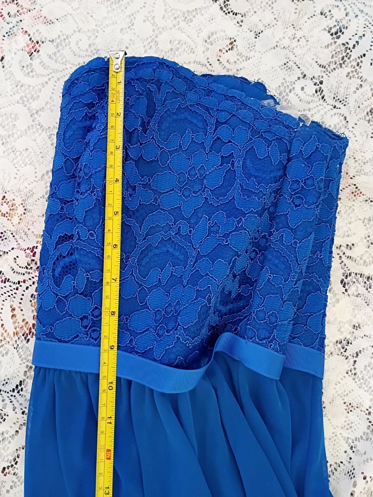 как выглядит Davids Bridal Short Strapless Bridesmaid Dress Royal Blue, Lace Top, Size 14 фото
