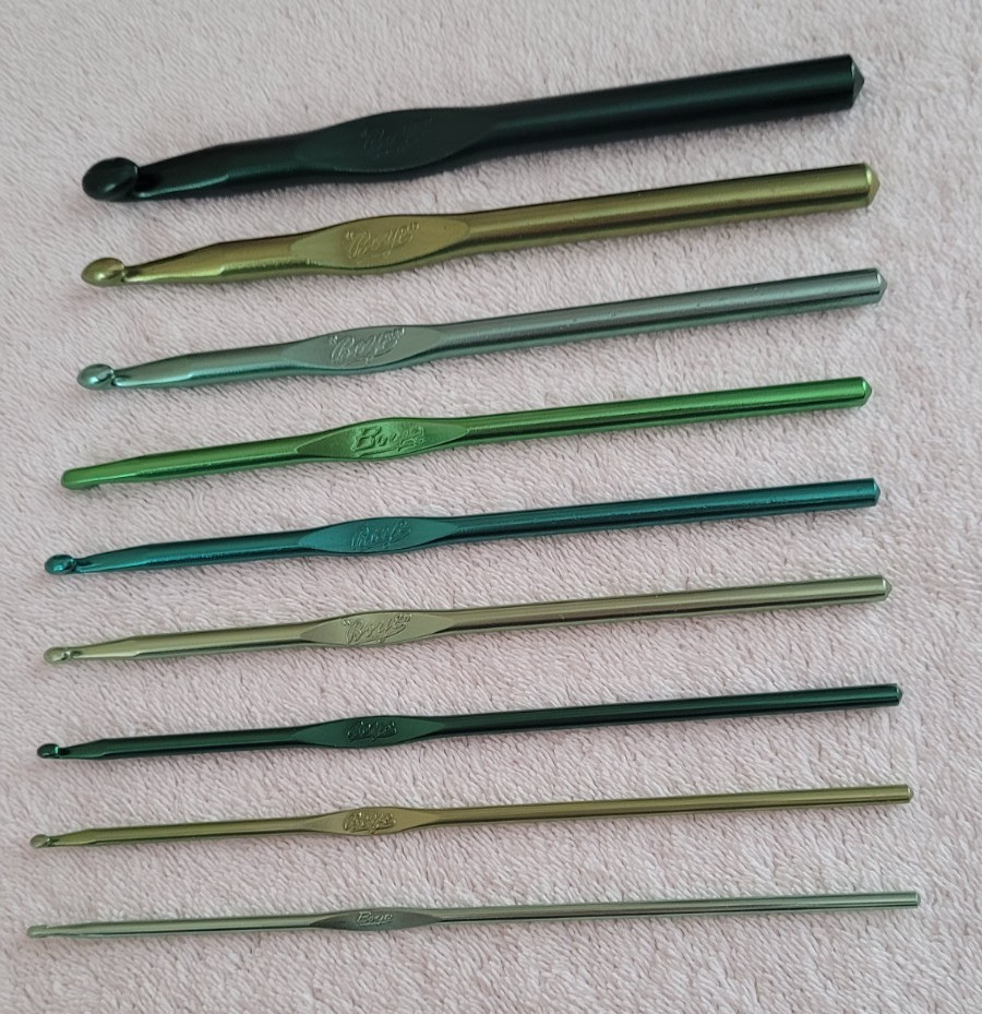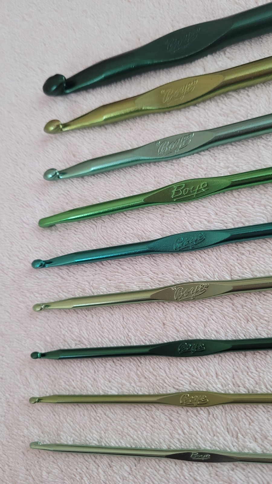 Green Pre-owned Metal Set of 9 Boye Crochet Hooks D,E,F,G,H,I,J,K, and N