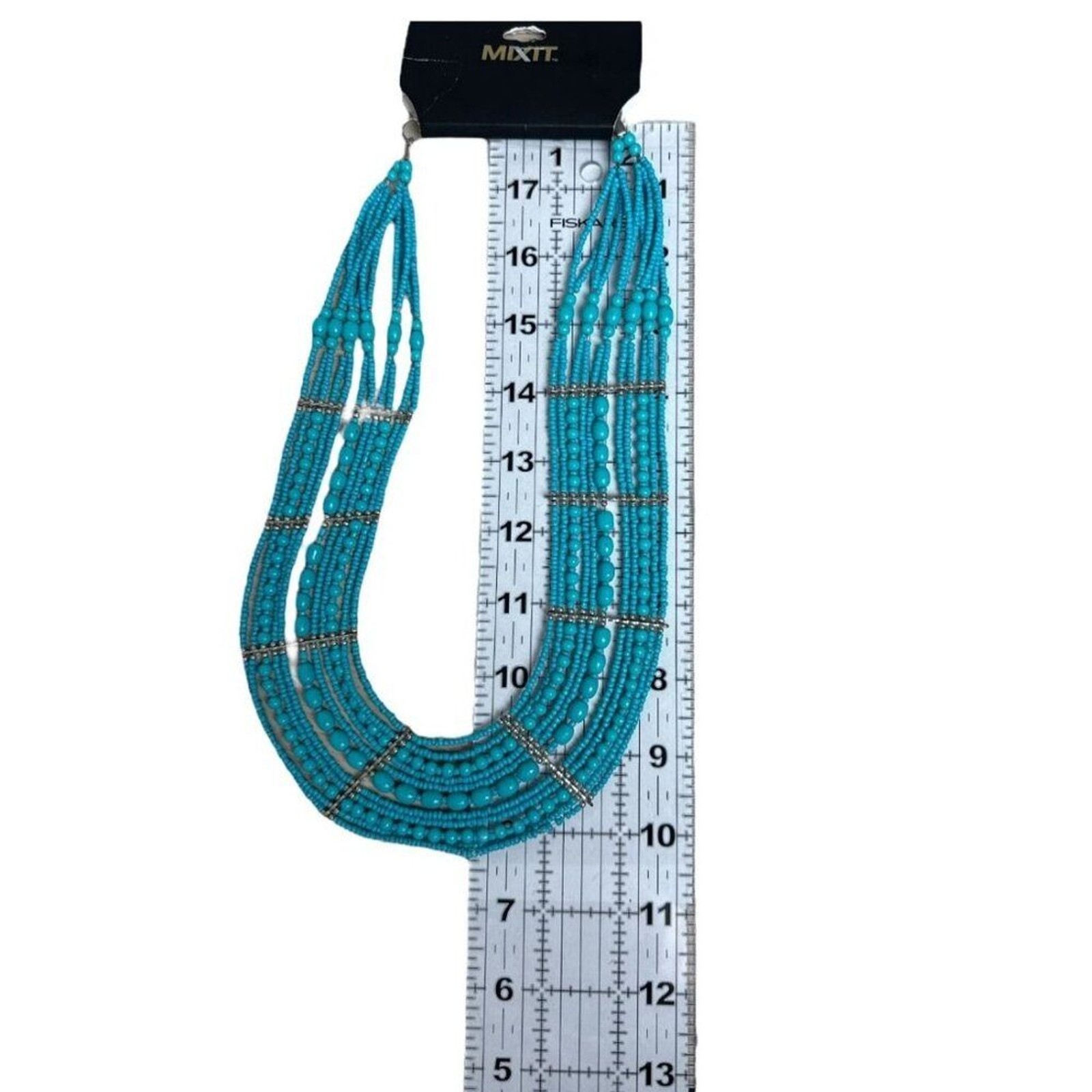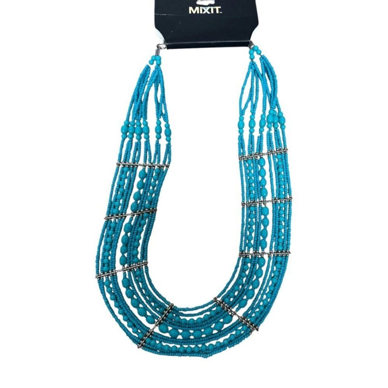 как выглядит Multi-Strand Faux Turquoise Beaded Statement Necklace Silver Tone Boho Chic фото