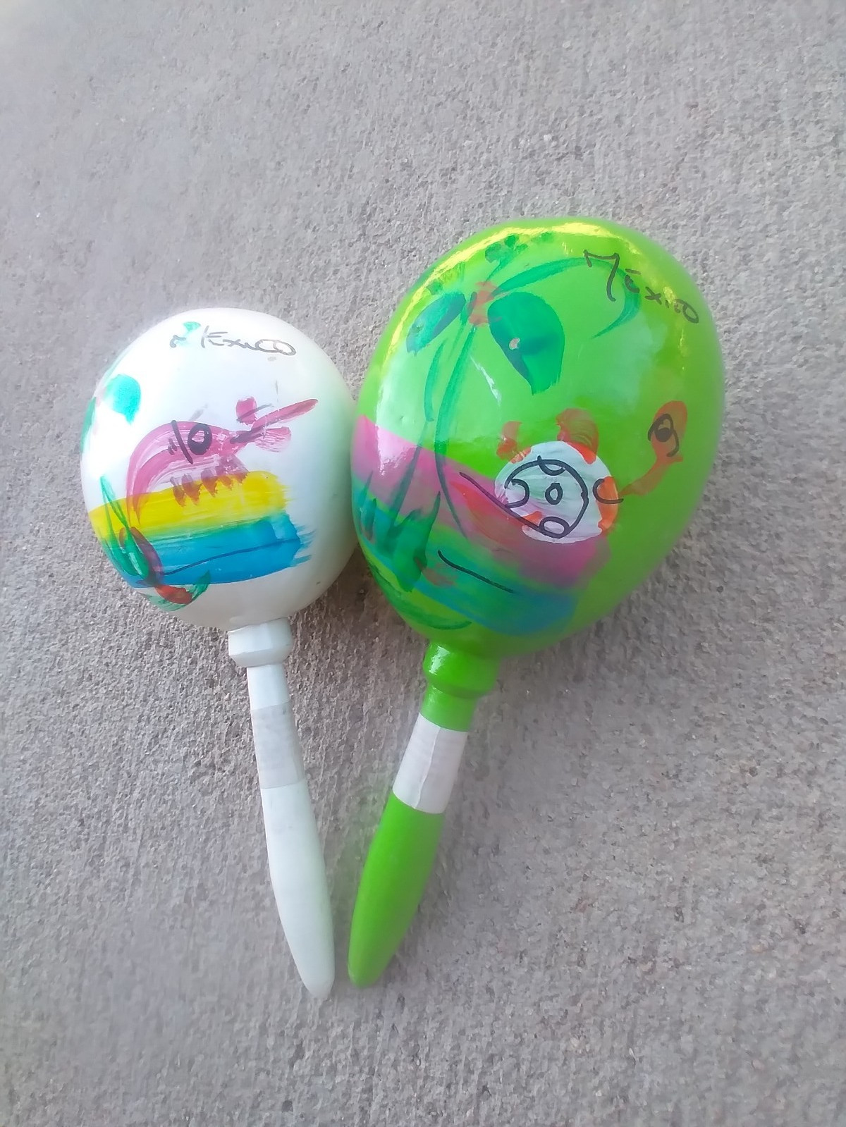 Handmade Maracas Shakers Mexican from Mexico Green Music Percussion Swans Qty 2
