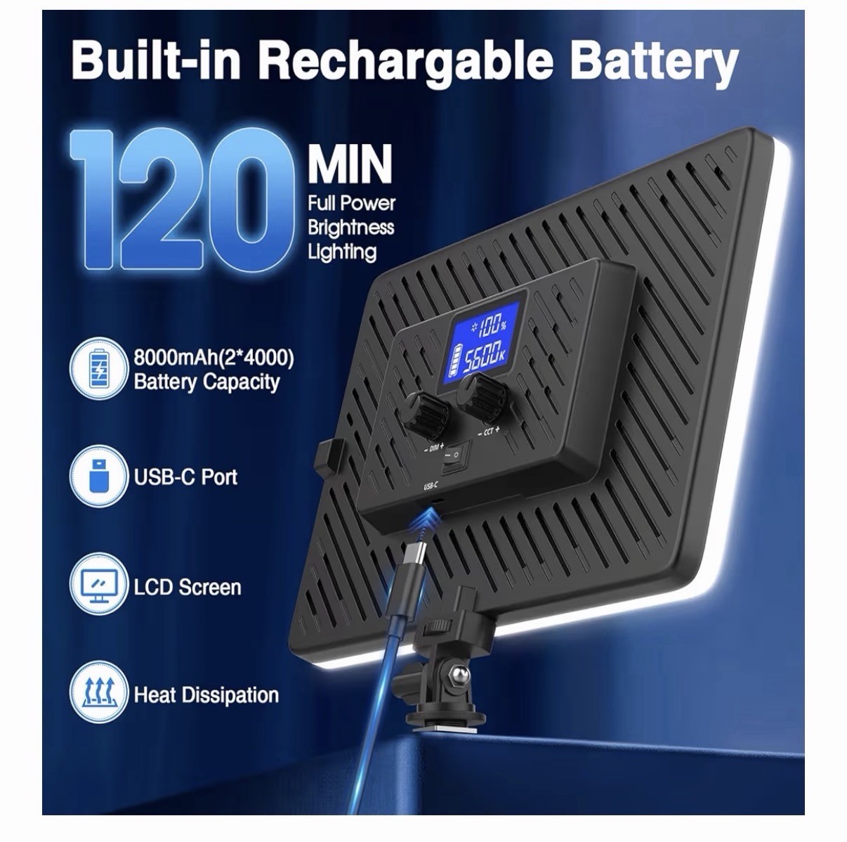 как выглядит LED Video Light Panel, 20W Photography Lighting Portable Soft Light Built-in фото