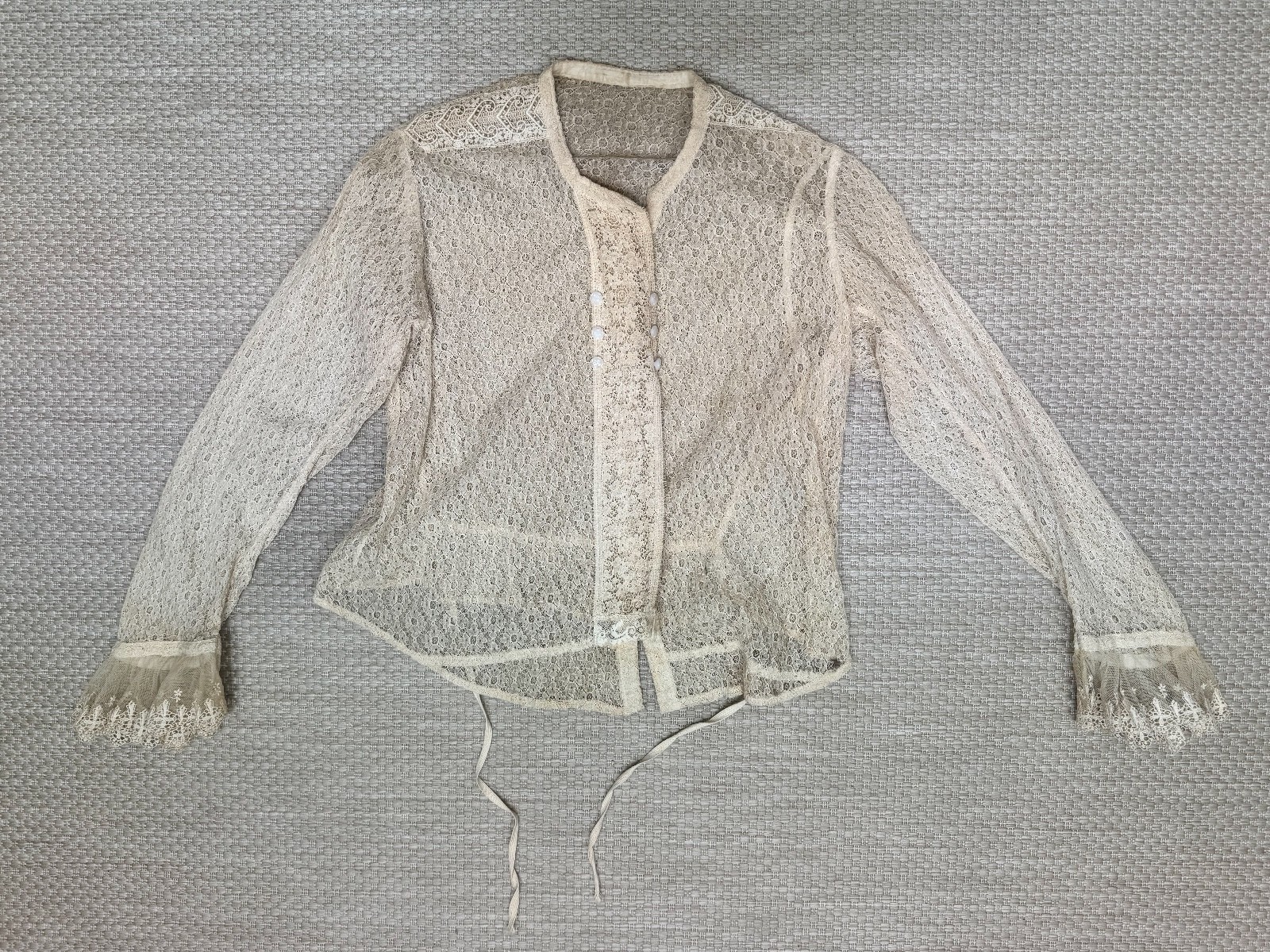 Antique Victorian cream long sleeve floral lace blouse off white sheer