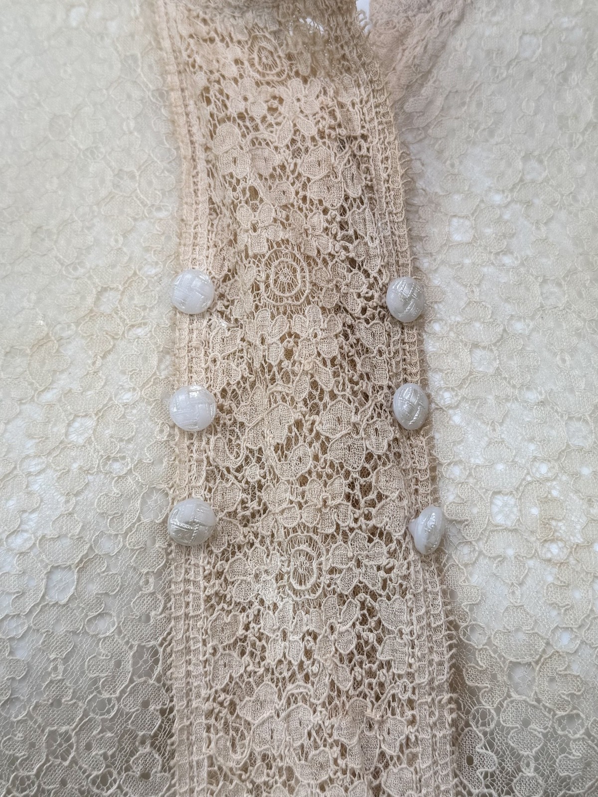 как выглядит Antique Victorian cream long sleeve floral lace blouse off white sheer фото