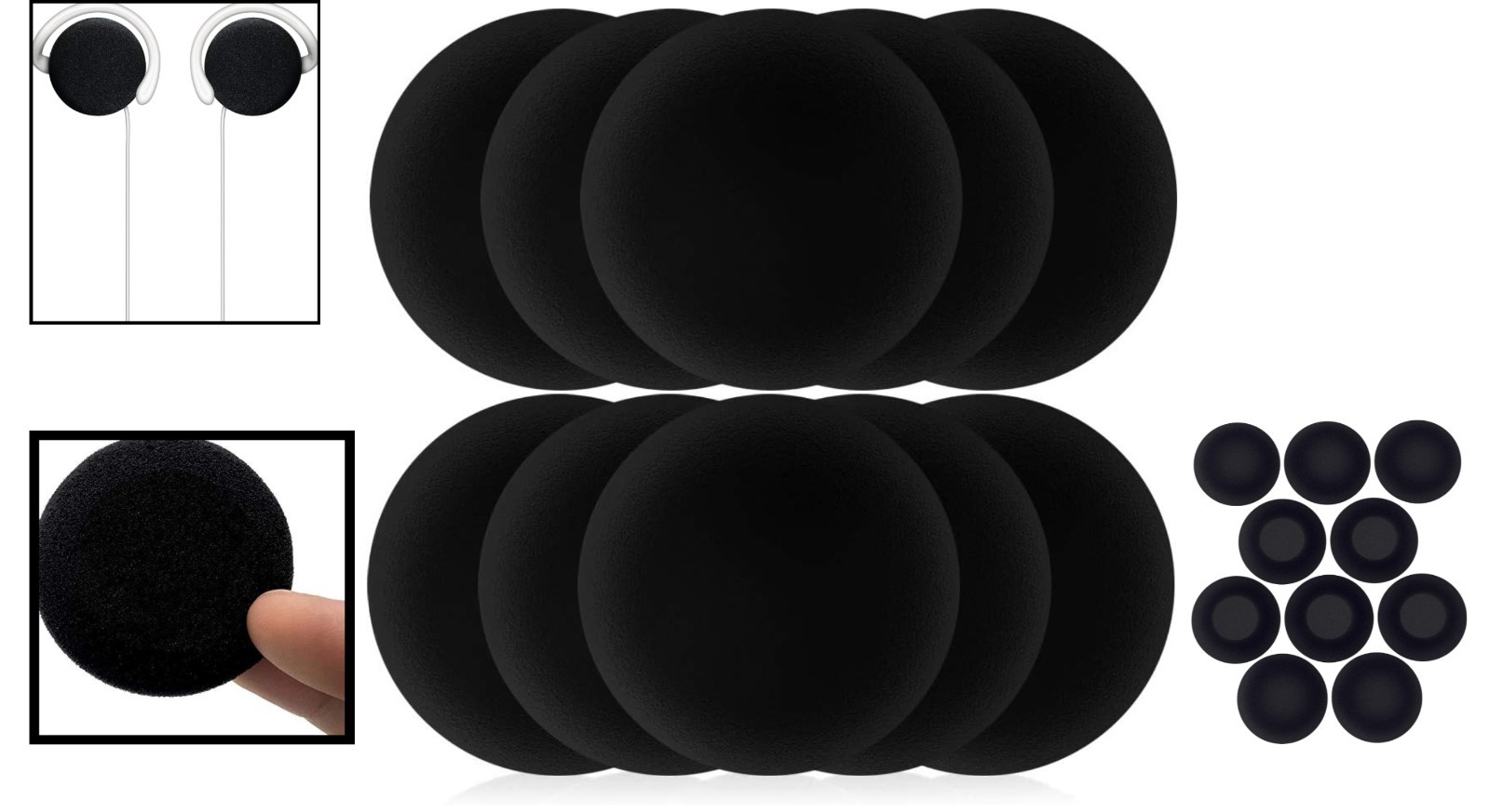 как выглядит Comfort Plus 60mm Replacement Foam Ear Cushions - 10 Pack for Earbuds Headsets фото