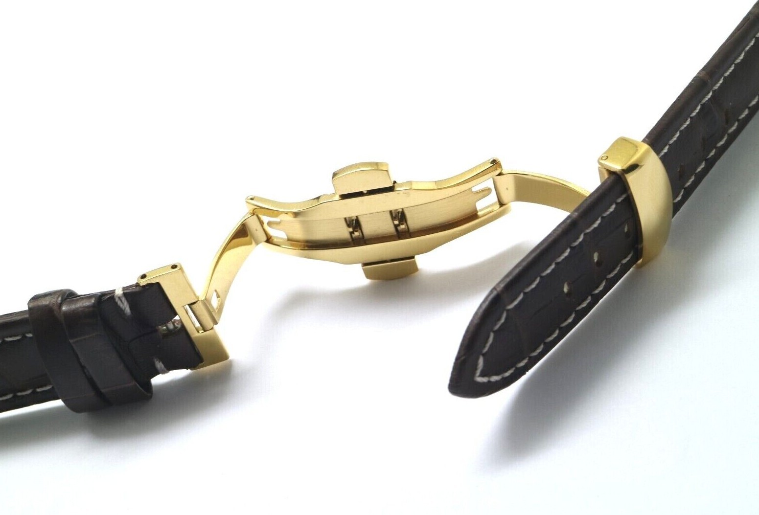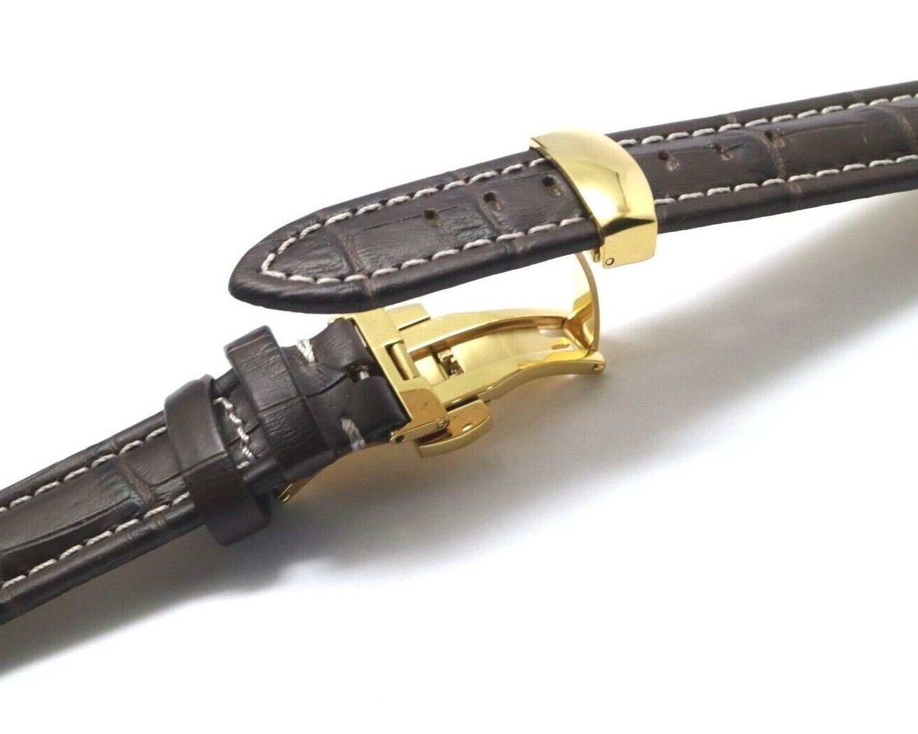 как выглядит 20mm Brown/White Croco Embossed Leather Watch Strap Gold Tone Push Button Clasp фото