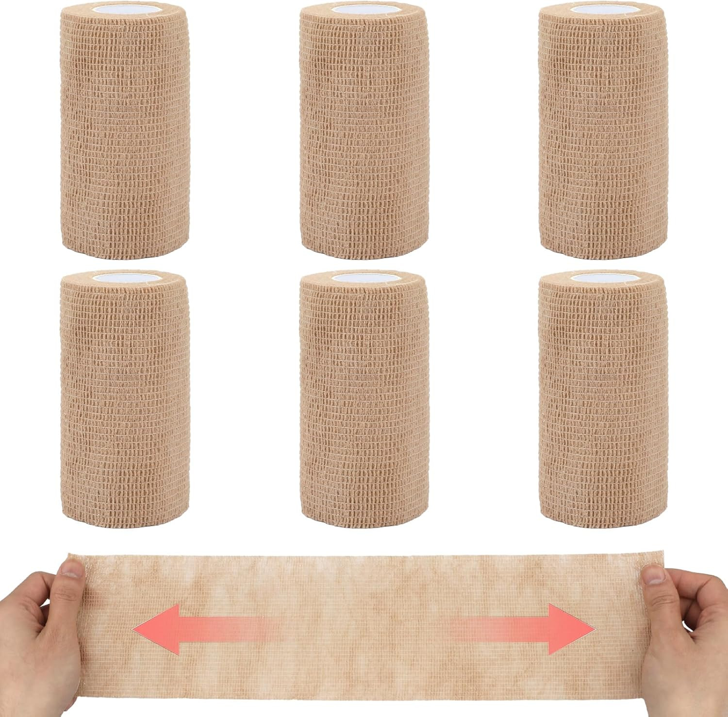 6 Rolls Self Adhesive Bandage Wrap 4in x 5yd Elastic Tape