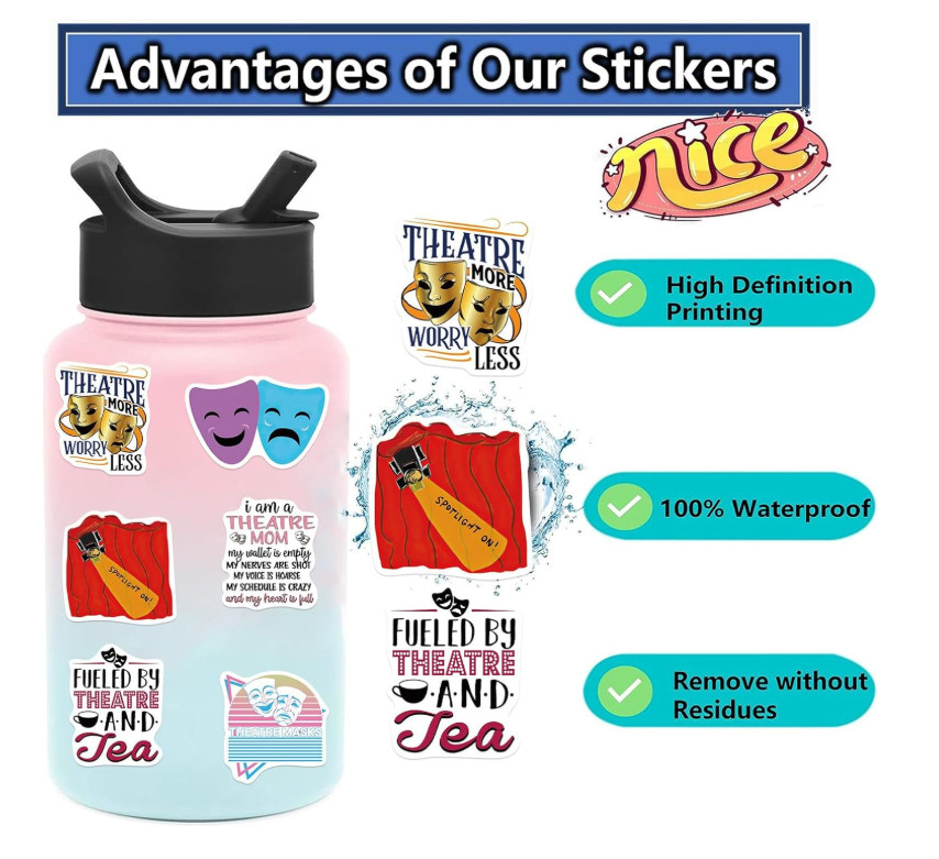 50pcs Theatre Theme Stickers Waterproof Drama Mask Vinyl Decals Locker Computer