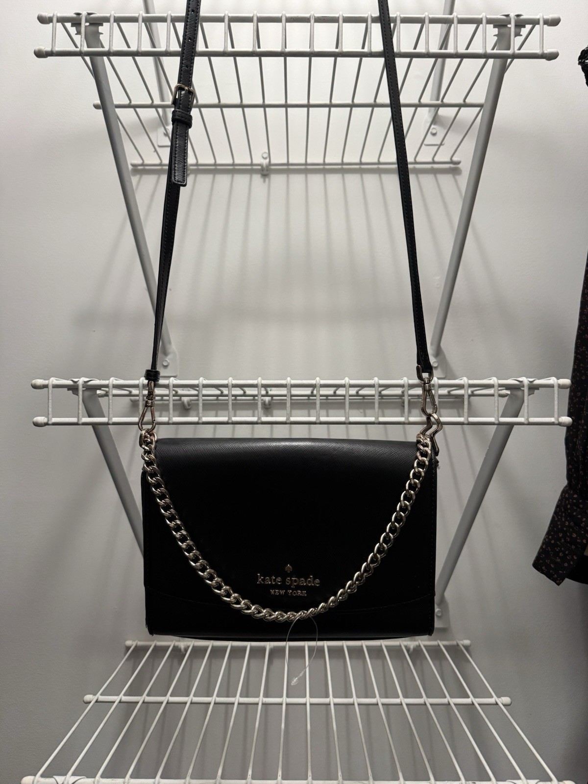 как выглядит Kate Spade Vintage VTG 90s Black Silver Chain Buckles Long Strap Purse фото