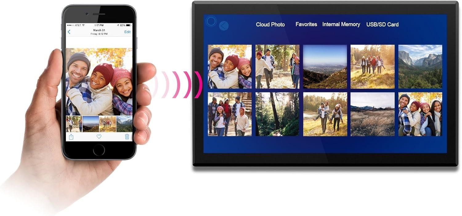 Aluratek WiFi Digital Photo Frame 10.1 Touchscreen IPS LCD 16GB Black New
