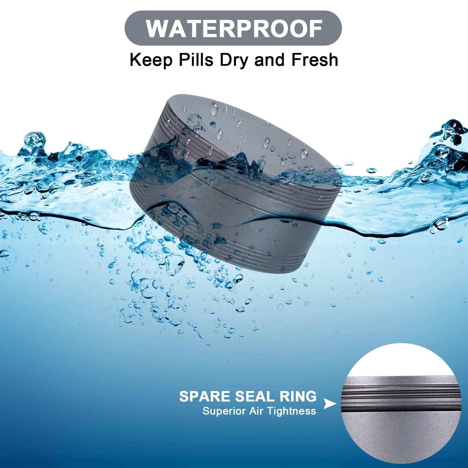 Daily Metal Pill Box Pill Case - Single Waterproof Travel Pill Container Roun...