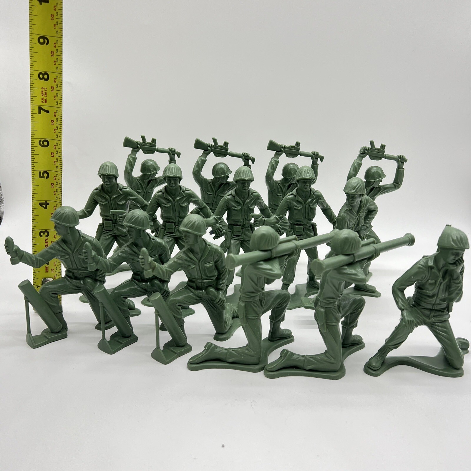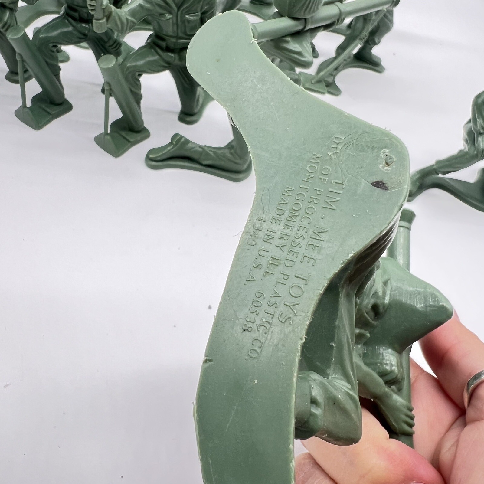 TIM-MEE Toys Toy Green Soldiers Large 5 Plastic Made In USA Lot Of 15 Vintage