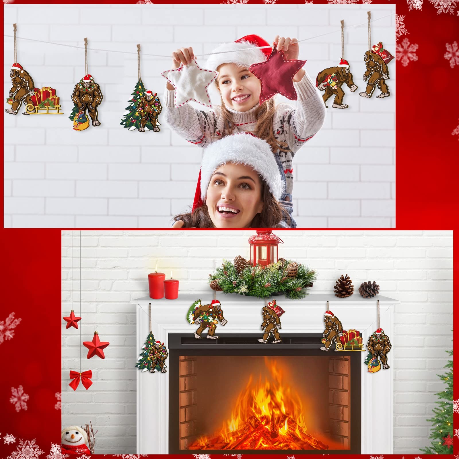 как выглядит 24 Pcs Christmas Bigfoot Ornaments Wooden Funny Decorations Bigfoot Decor Chr... фото